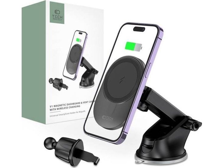 Tech-Protect TECH-PROTECT MM15W-V1 magnetisk Magsafe bilhållare med trådlös laddare 15W svart