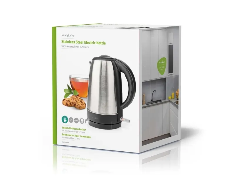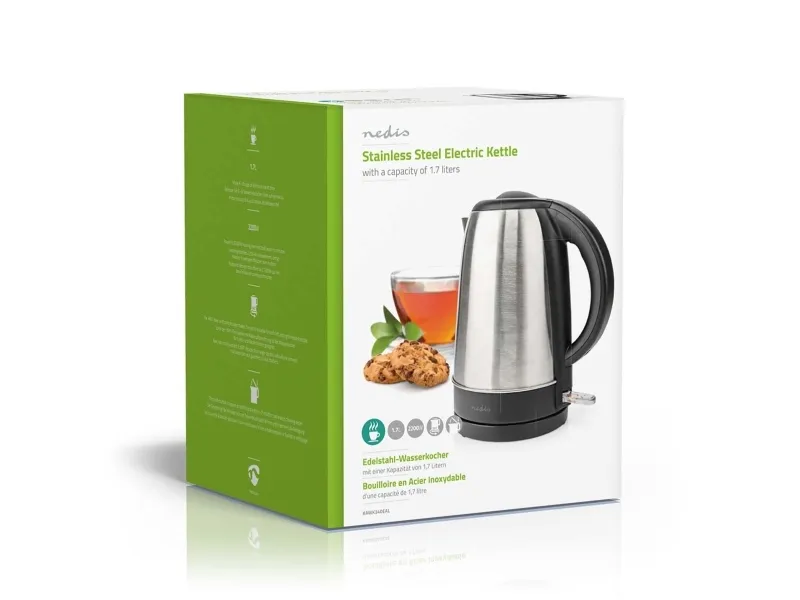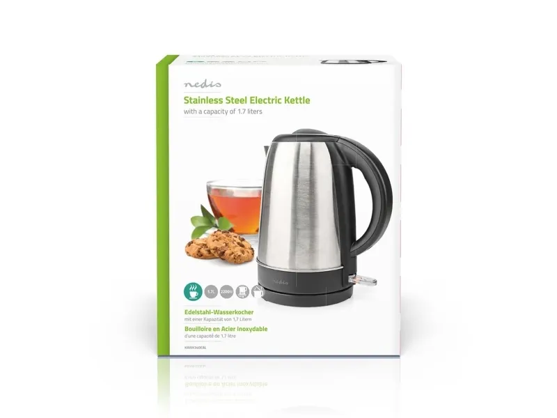 Nedis KAWK340EAL, 1,7 L, 2200 W, Aluminium, Sort, Rustfrit stål
