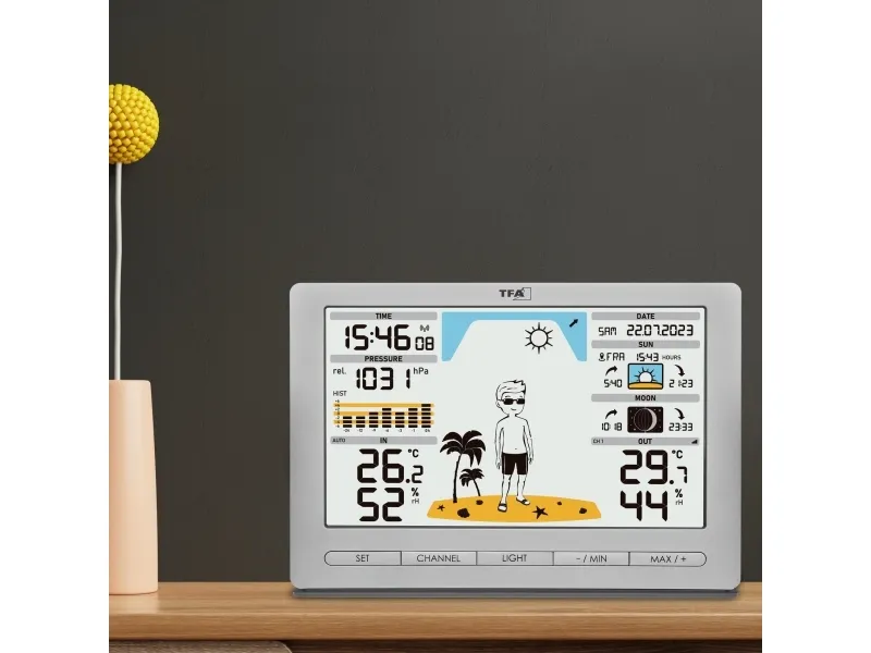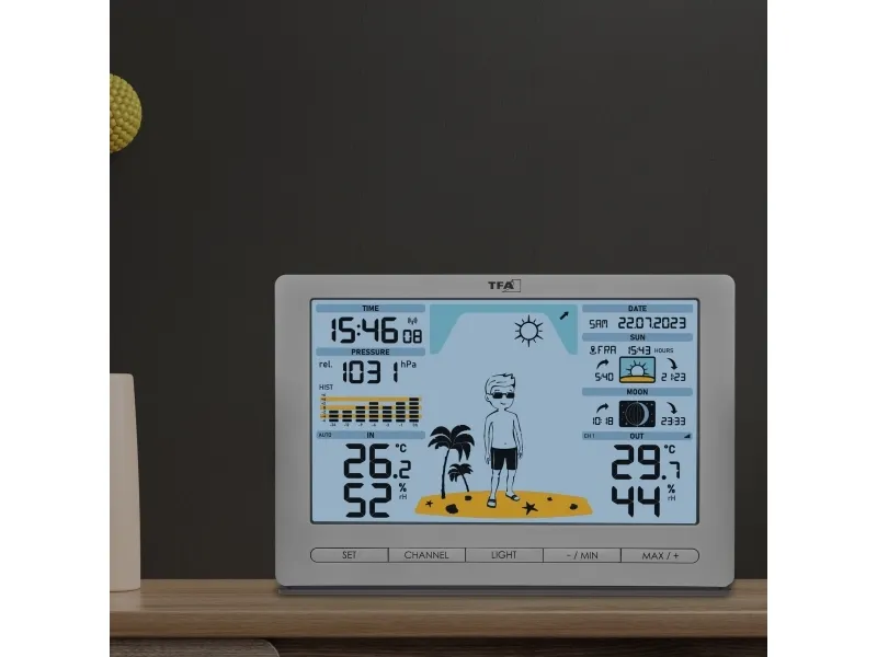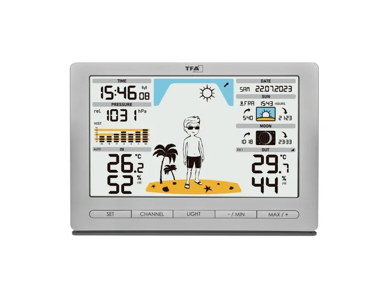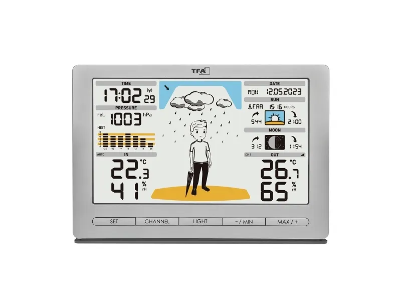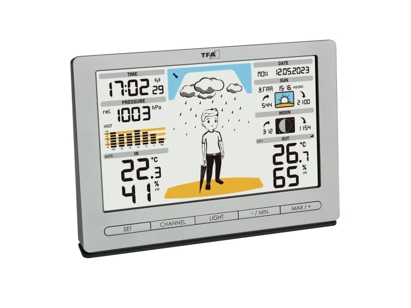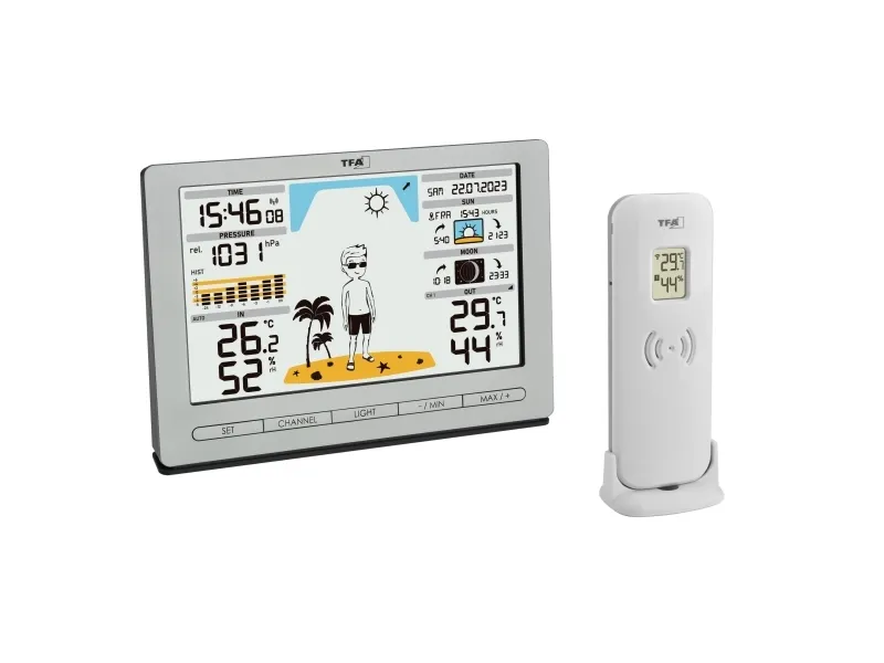 TFA-Dostmann Meteo Jack, Silver, Inomhushygrometer, Inomhustermometer, Utomhusbarometer, Utomhushygrometer, Utomhustermometer, Barometer, hygrometer, Termometer, Barometer, hygrometer, Termometer, Plast, 10 - 99%