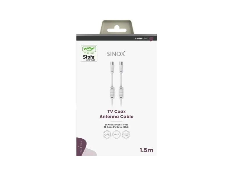 Sinox PRO antennkabel, YouSee & Stofa godkänd, 1,5m, vit