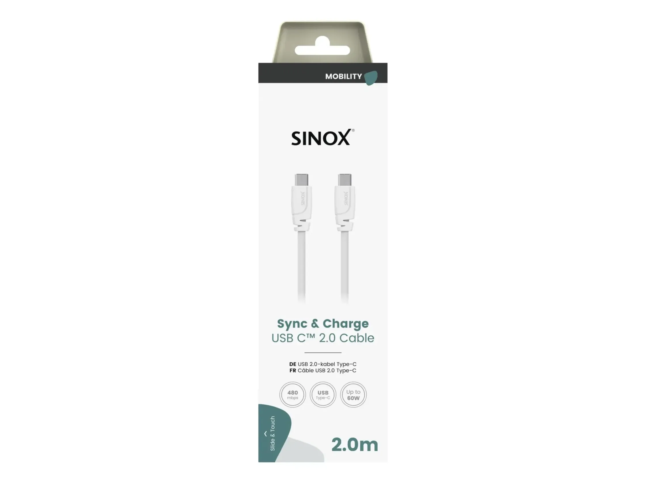 Sinox SOI06462, 2 m, USB C, USB C, USB 2.0, 0,48 Gbit/s, Vit