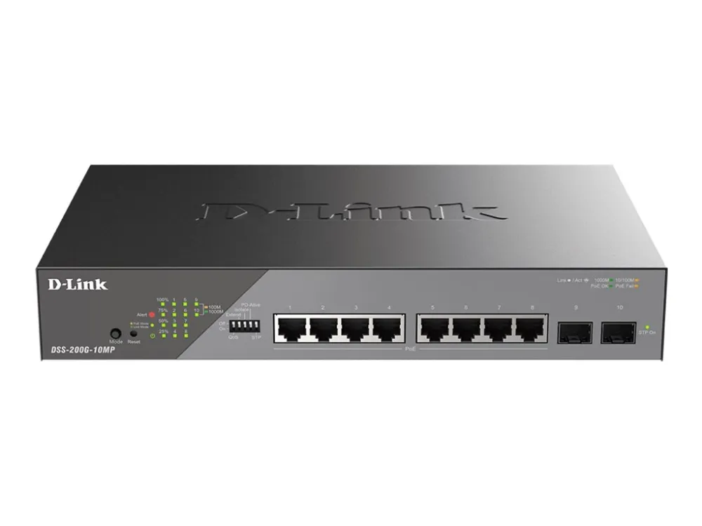 D-Link DSS 200G-10MP-switchen är utformad för att uppfylla kraven i moderna nätverk och erbjuder förbättrade anslutningsmöjligheter, robust säkerhet och hög prestanda. Med 8 PoE-portar och 2 Gigabit SFP-portar ger den flexibla anslutningsalternativ för en mängd olika enheter, vilket garanterar tillförlitlig strömförsörjning och höghastighetsdataöverföring. Switchen är utrustad med avancerade säkerhetsfunktioner som SSL-kryptering och ARP-stöd, vilket skyddar ditt nätverk från cyberhot. Switchens bandbredd på 20 Gbps och vidarebefordringsbandbredd på 14,88 Mbps gör att den kan hantera tung datatrafik och säkerställa effektiv nätverksprestanda. D-Link DSS 200G-10MP är dessutom ett miljövänligt val, med Green Technology och ENERGY STAR Ethernet (EEE) för att minimera strömförbrukningen. Den är också lätt att hantera via SNMP, ICMP, MIB med mera, vilket möjliggör enkel installation och hantering. Oavsett om det gäller ett litet kontor eller ett stort företag är D-Link DSS 200G-10MP-switchen en pålitlig, säker och effektiv lösning för dina nätverksbehov.