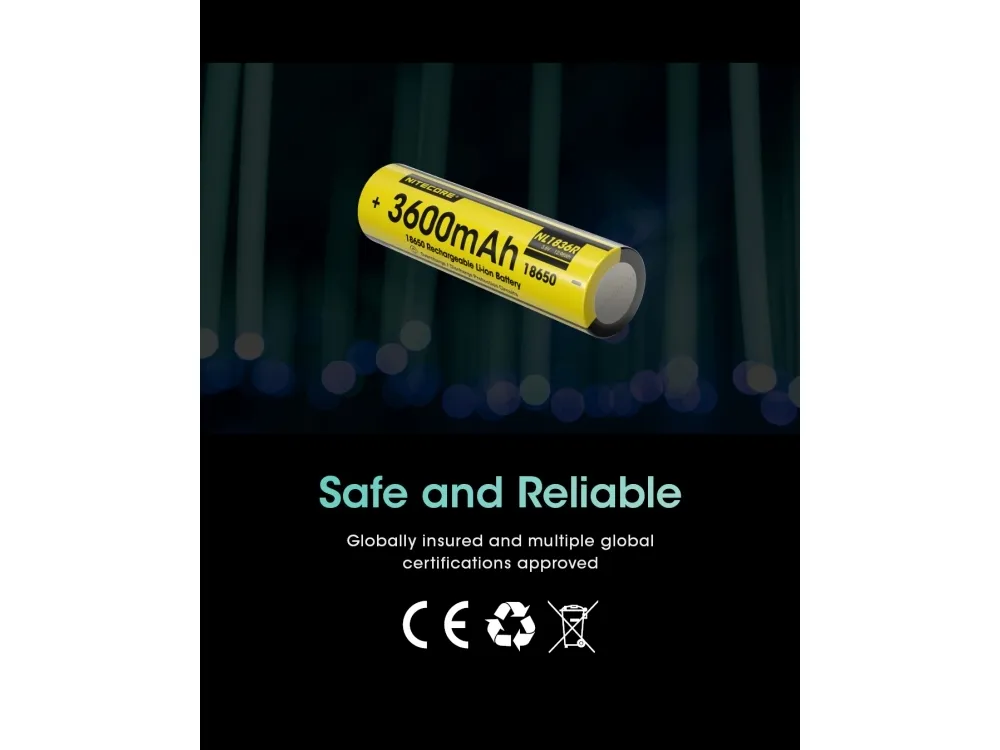 Nitecore NL1836R, 3600 mAh, 12,96 wh, Litium-Ion (Li-Ion), 3,6 V, 1 styck
