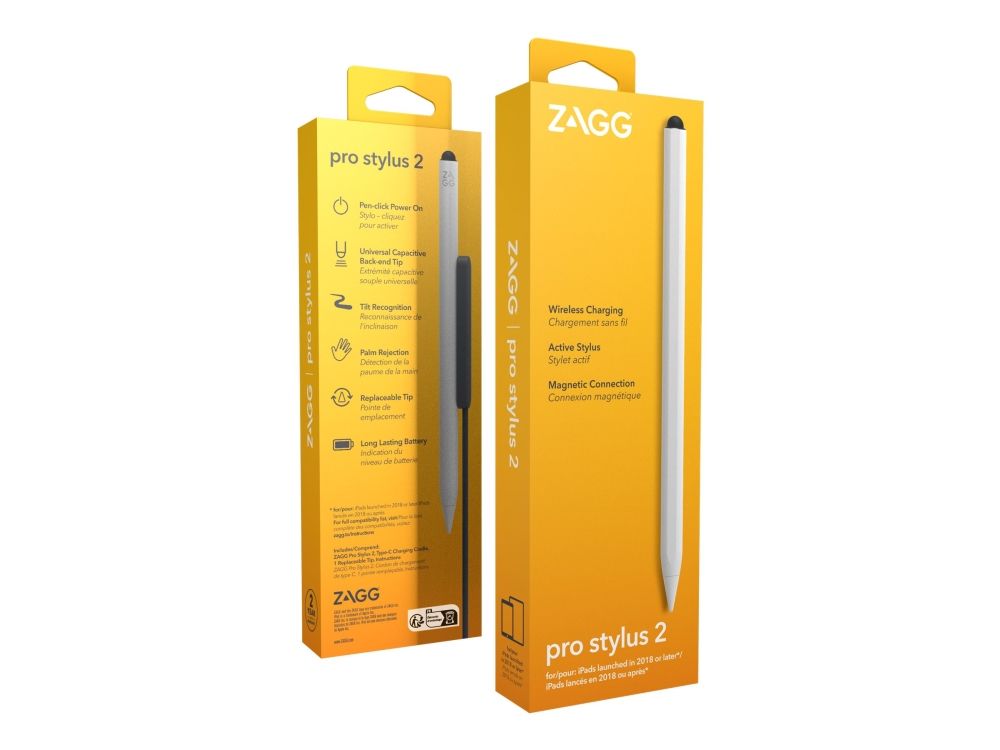 Öka din produktivitet med ZAGG Pro Stylus 2. Anteckna, skissa, markera dokument, svep genom sidor och gör helt enkelt mer. Pro Stylus 2 är lätt att använda med en fin spets för exakta, pixelperfekta ritningar och en rundad kapacitiv spets för svepningar. Pro Stylus 2 har även lutningsigenkänning, handavstötning, trådlös laddning och ett batteri med lång livslängd.