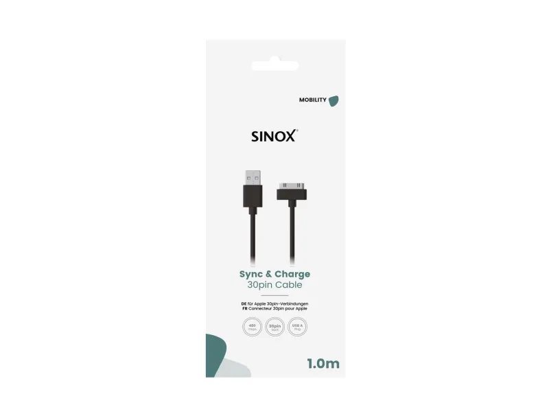 Sinox 30-pin kabel kan bruges til at oplade og synkronisere din iPhone® eller iPad®.