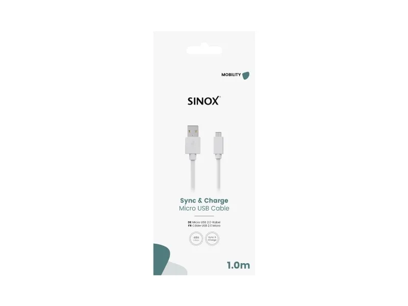 Sinox Micro USB till USB A kabel. 1m. Vit