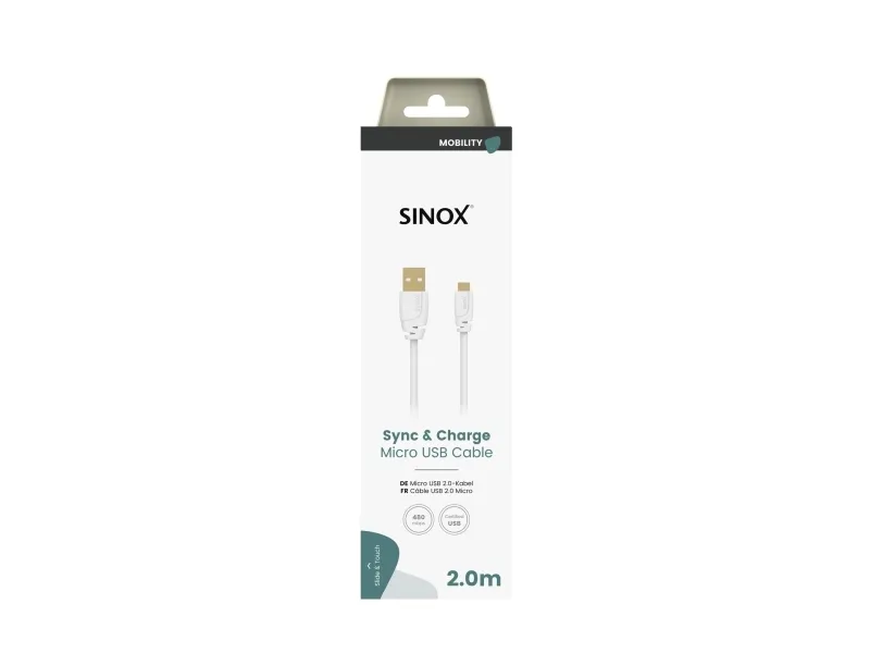 Sinox Micro USB kabel. 2m. Hvid. Micro USB (han) - USB A 2.0 (han)