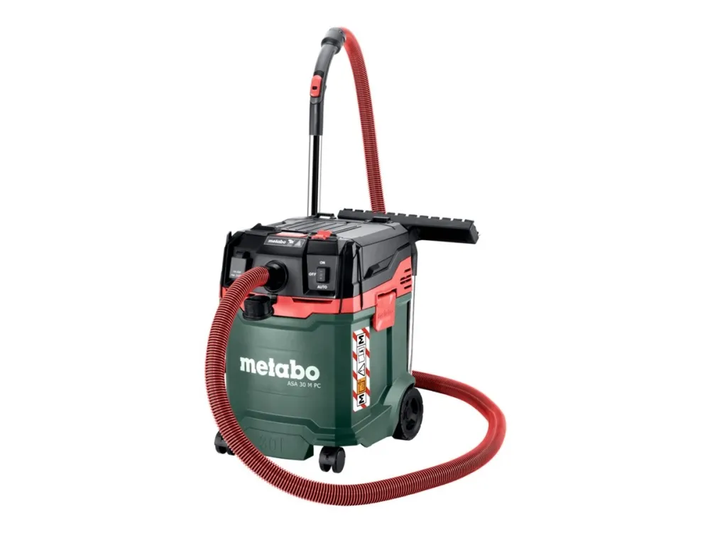 Denna dammsugare har funktioner som PressClean-filterrengöring för underhåll och integrerad förvaring av tillbehör. Den medföljande flexibla slangen, förlängningsröret och olika munstycken säkerställer grundlig rengöring i olika miljöer. Med en 8 m lång nätsladd och ett inbyggt elverktygsuttag uppfyller Metabo ASA 30 M PC en rad rengöringsbehov på ett effektivt och pålitligt sätt.