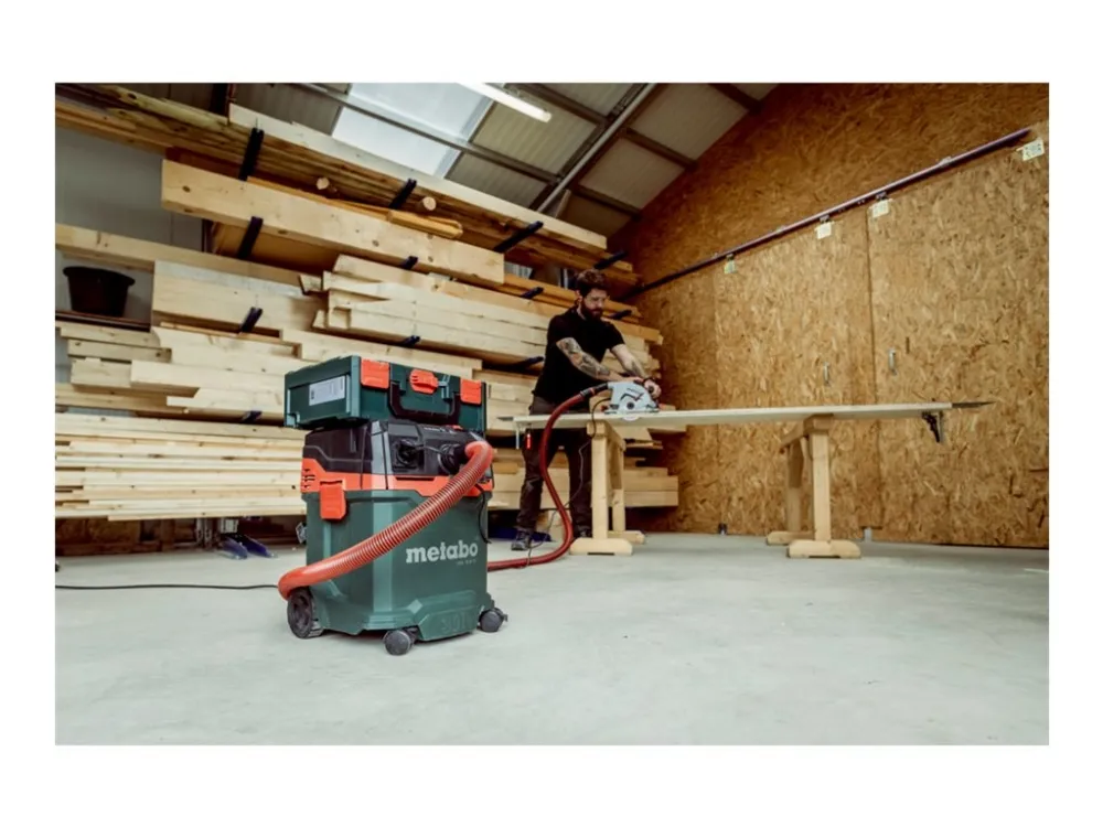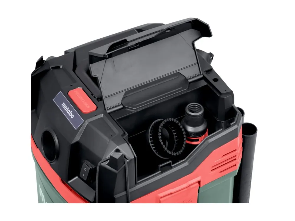 Denna dammsugare har funktioner som PressClean-filterrengöring för underhåll och integrerad förvaring av tillbehör. Den medföljande flexibla slangen, förlängningsröret och olika munstycken säkerställer grundlig rengöring i olika miljöer. Med en 8 m lång nätsladd och ett inbyggt elverktygsuttag uppfyller Metabo ASA 30 M PC en rad rengöringsbehov på ett effektivt och pålitligt sätt.