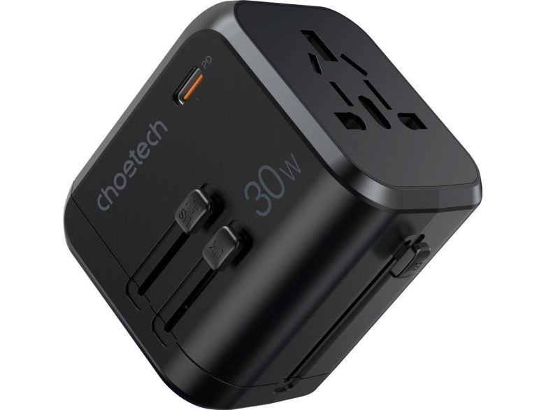 Rese-/väggladdare Choetech PD5008, 3xUSB-A, 1xUSB-C, GaN, 30 W (svart)