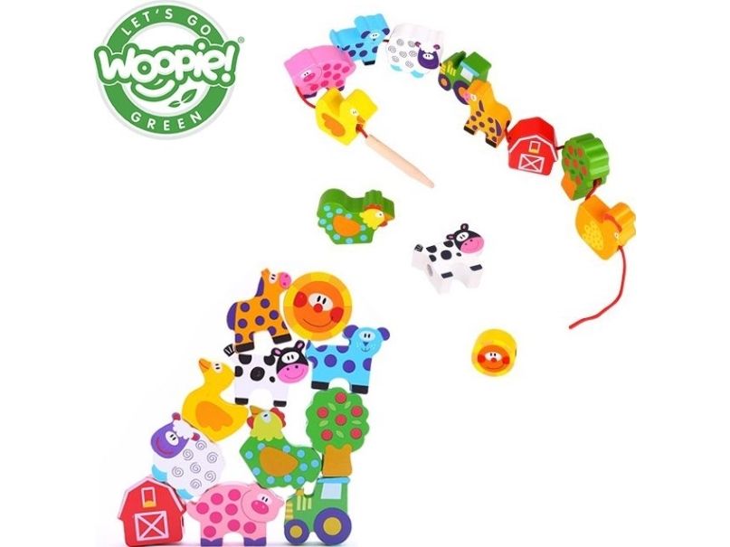 Woopie WOOPIE GREEN träklossar att snöra djur 13 delar