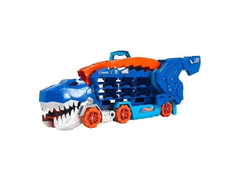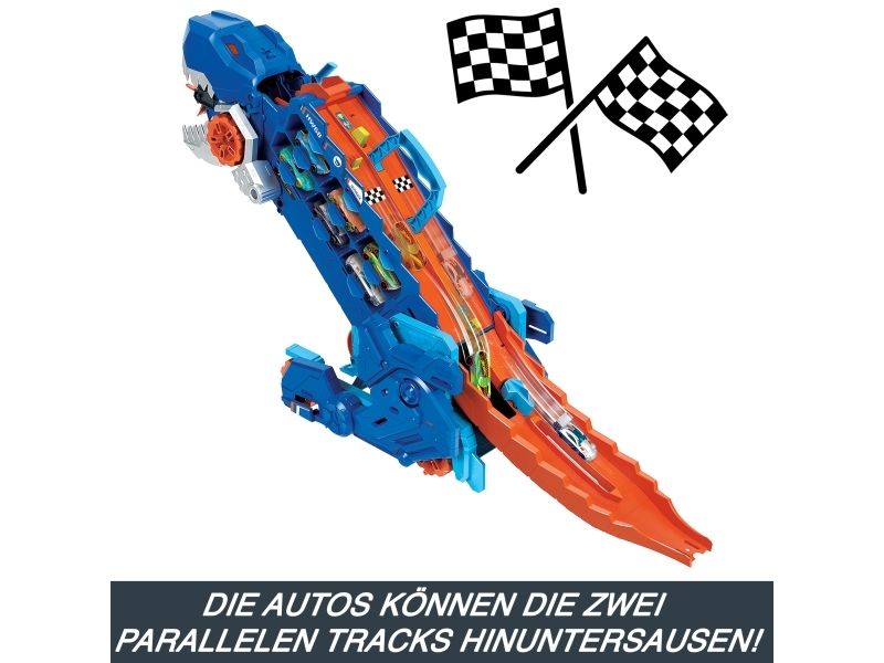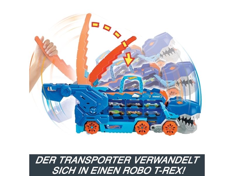 Hot Wheels City Ultimate T-Rex Transporter, Hauler förvandlas till en dino, med «Let’s Race»