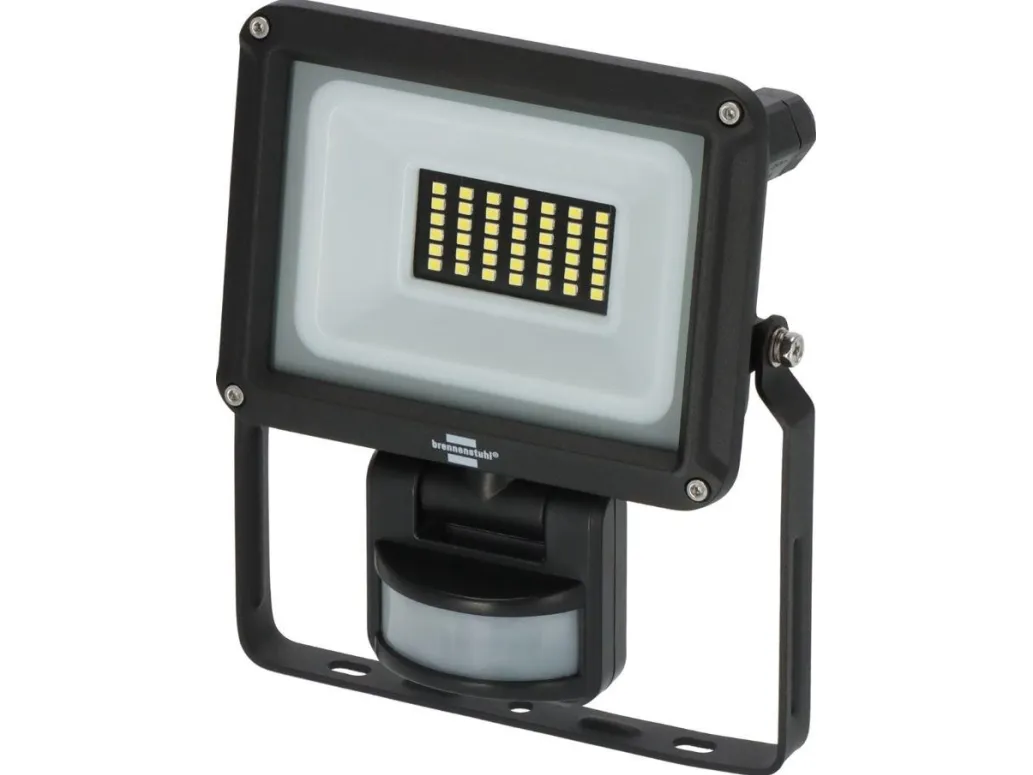 The JARO 3060 P LED Spotlight for wall mounting is an extremely energy-efficient LED Floodlight with 20W power that meets the highest demands. With IP65 protection (dustproof and jet-proof) and a safety glass pane for additional impact protection, the Spotlight is suitable for both indoor and outdoor use. The motion detector with adjustable twilight switch can be rotated horizontally and vertically and automatically triggers light at a detection range of up to 10m and a 180° angle of coverage. The light duration can be adjusted as desired - from 10 seconds to approx. 5 minutes. The built-in Everlight SMD LEDs impress with their exceptionally long service life and their special light diffusion for large-area illumination. The infrared motion detector ensures ideal, automatic illumination of, for example, entrance areas, driveways or carports and thus serves to increase safety. In addition, the luminaire convinces with the following features:Brennenstuhl LED Spotlight JARO 3060 P (LED Floodlight for wall mounting for outdoor IP65, 20W, 2300lm, 6500K, with motion detector). Product colour: Black, International Protection (IP) code: IP65, Housing material: Metal. Total power: 20 W, Bulb technology: LED, Colour temperature: 6500 K. Power source: AC, Input voltage: 220-240 V, AC input frequency: 50-60 Hz. Width: 150 mm, Depth: 50 mm, Height: 183 mm