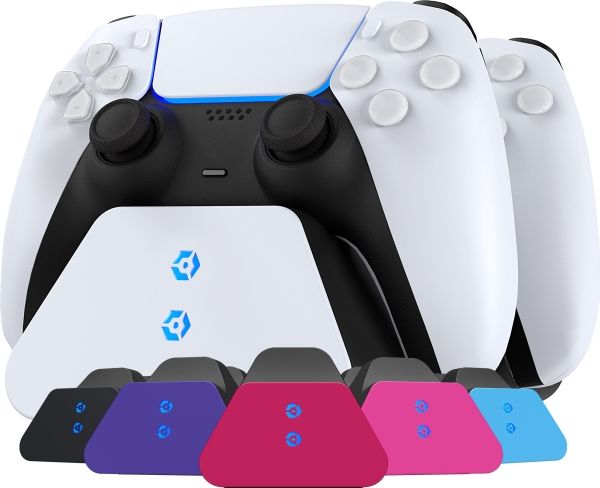 Ladda och visa dina PS5 DualSense-kontroller med laddningsstället DUO från GIOTECK. Du kan inte bara ladda två controllers samtidigt, utan de medföljande utbytbara frontplattorna kan också anpassas direkt för att matcha din PlayStation-installation för en iögonfallande display.