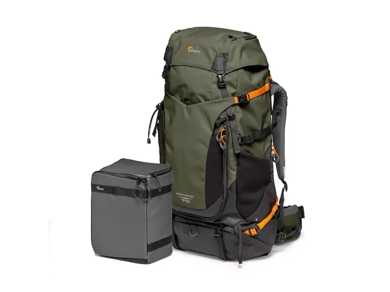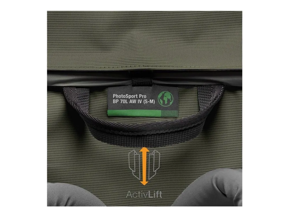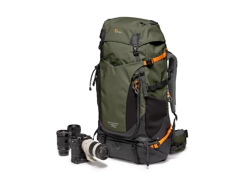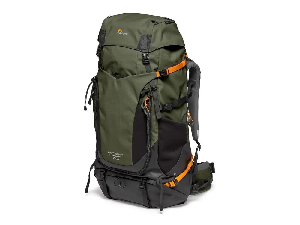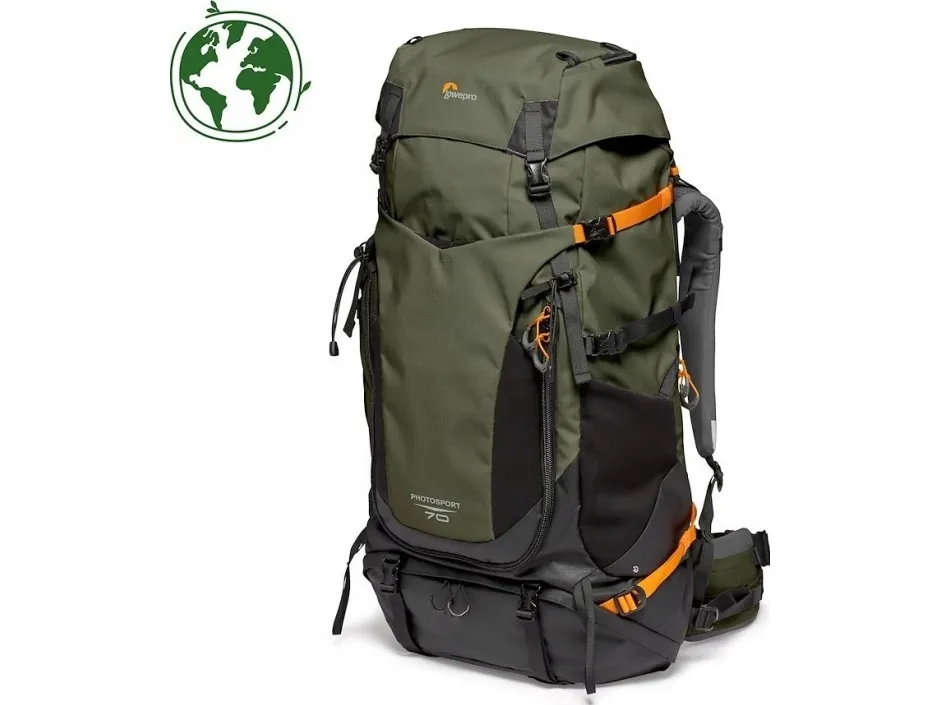 The Lowepro Photo Sport PRO 70L AW IV backpack demonstrates Lowepro's commitment to quality and innovation. Designed for photographers and adventurers who require functionality and comfort, this backpack offers a substantial 70-liter storage space, tailored for digital photo cameras with lenses, hiking essentials, hydration reservoirs, and even a tripod. Its ActivLift harness system ensures comfort on the longest treks, while the All Weather AW Cover provides reliable protection against the elements. Constructed from durable materials such as 420D diamond ripstop nylon and featuring a lightweight design, it stands up to the challenges of outdoor photography. Moreover, with 86% of the product made from recycled content, it's a choice that benefits not only the user but the planet as well.