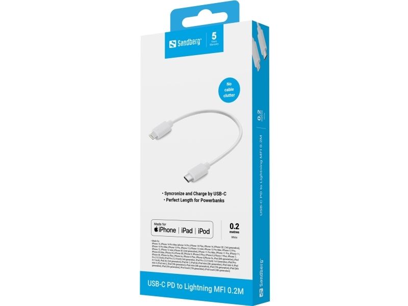 Sandberg USB-C PD to Lightning MFI 0.2M