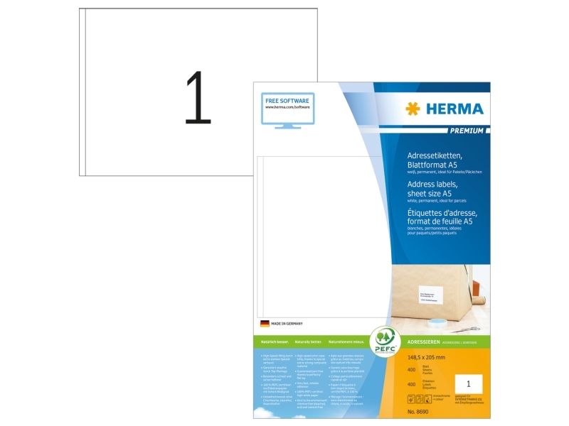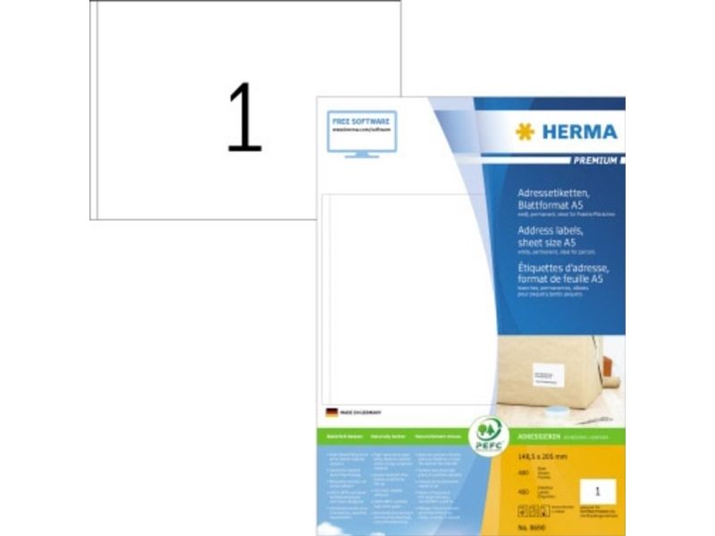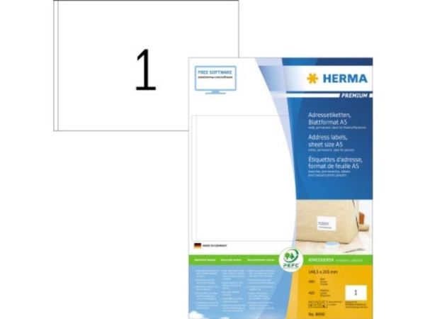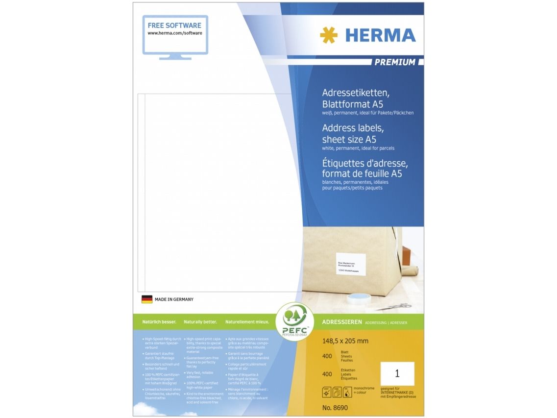 HERMA Premium - Papper - matt - permanent självhäftande - vit - 148.5 x 205 mm 400 etikett (er) laminerade adressetiketter
