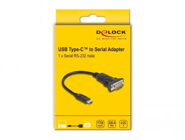 Delock - Seriell adapter - USB-C 3.1 Gen 1 / Thunderbolt 3 - RS-232 x 1 - svart