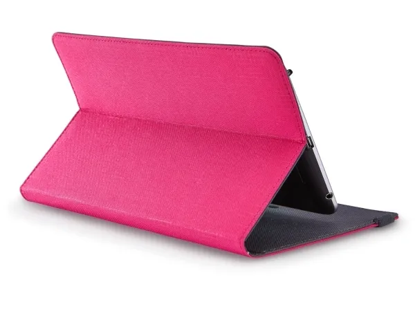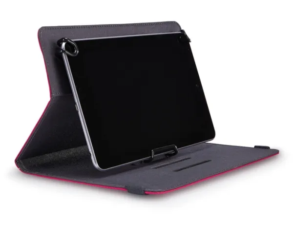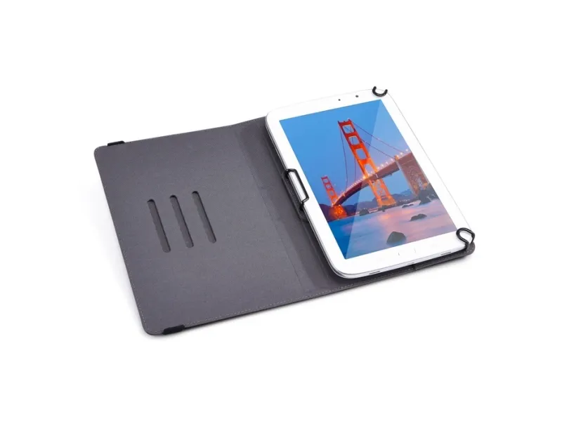 For users who constantly swipe, tap and type, this booklet folio keeps your tablet protected and easily accessible wherever you go. Coated, spring steel, elasticized clips stretch and lock hardware in place, offering a secure fit to a variety of 7”- 8” tablets. Slim lines and textured fabric cloak your latest technology in contemporary protection.
