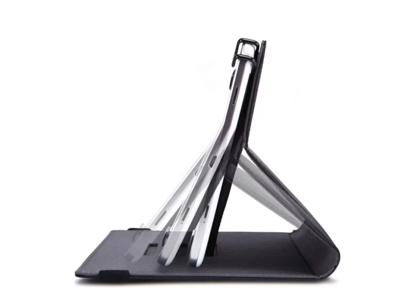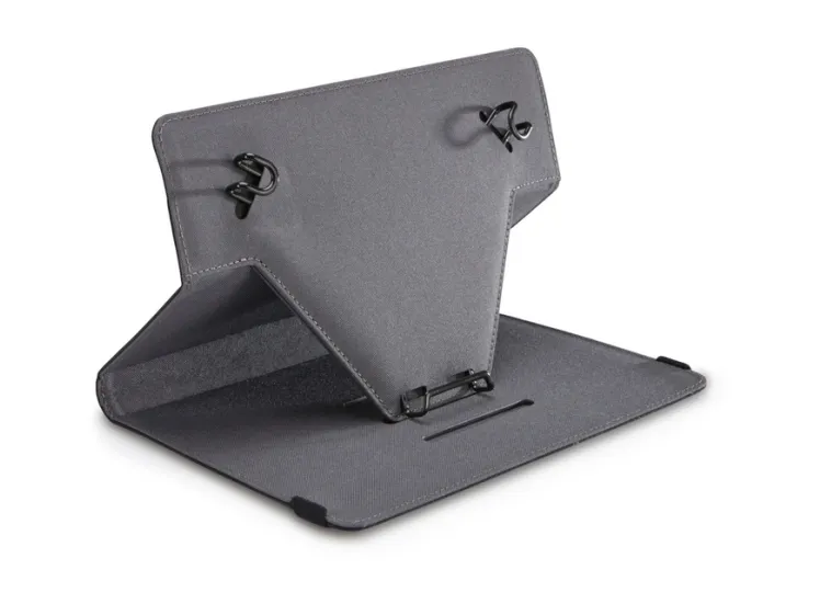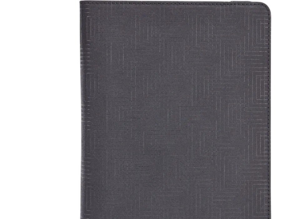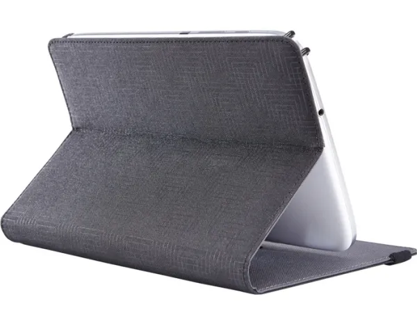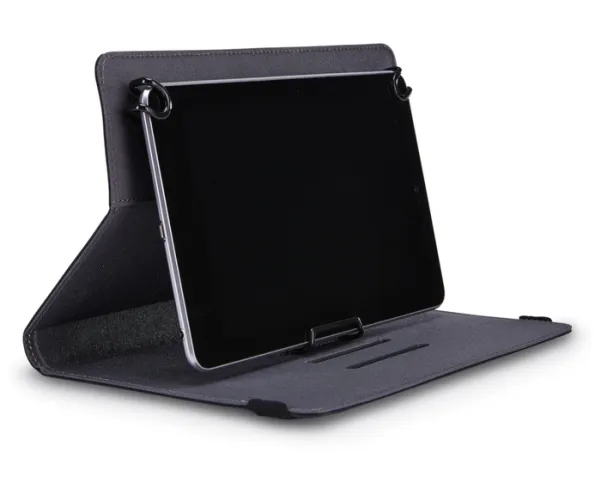For users who constantly swipe, tap and type, this booklet folio keeps your tablet protected and easily accessible wherever you go. Coated, spring steel, elasticized clips stretch and lock hardware in place, offering a secure fit to a variety of 7”- 8” tablets. Slim lines and textured fabric cloak your latest technology in contemporary protection.