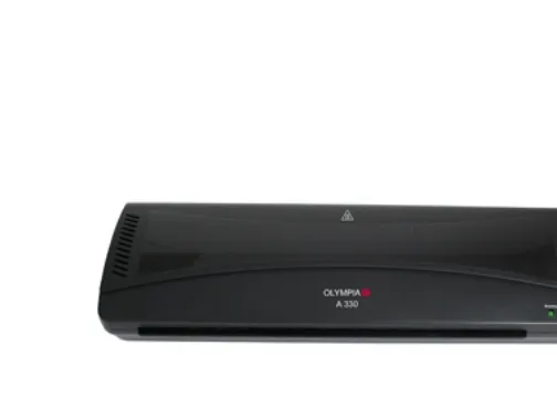 - Up to A3 sizeOlympia A 330. Maximum lamination width: 33 cm, Preheating time: 5 min, Lamination speed: 300 mm/min. Power consumption (typical): 400 W. Width: 440 mm, Depth: 150 mm, Height: 65 mm