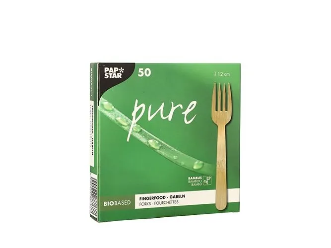 PAPSTAR Fingermatgafflar "pure", 120 mm, naturligt tillverkade av bambu, biologiskt nedbrytbara och komposterbara, - 1 st (88767)