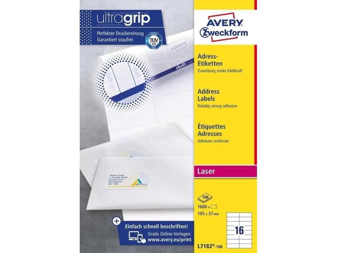 Averys JamFREE™-garanti säkerställer dessutom att du inte behöver bekymra dig för om etiketterna fastnar i skrivaren och orsakar stopp. Etiketterna har en pålitlig och permanent vidhäftning.