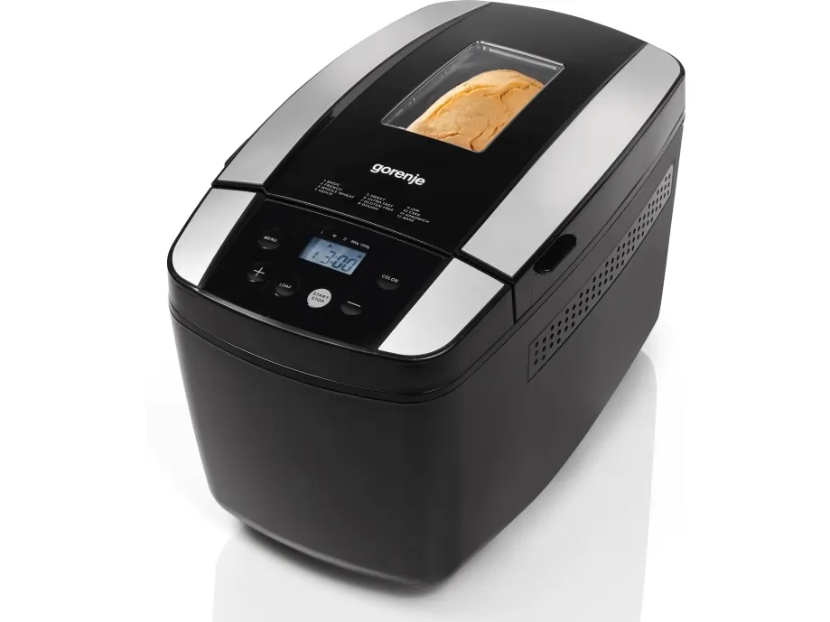 Discover the joy of homemade bread with the Gorenje BM1210BK breadmaker. Designed for versatility and ease of use, this small kitchen appliance comes equipped with 12 programmable settings, allowing you to bake everything from classic loaves to gluten-free options and even jam. The 13-hour timer and keep warm function ensure that your bread is ready and perfect when you are, while the adjustable crust settings let you customize each loaf to your liking. Safety is also a priority, with an auto shut-off feature providing peace of mind. The Gorenje BM1210BK is not just about functionality; it's about creating moments and memories in the kitchen, all while being incredibly user-friendly with its included accessories and easy-to-clean design.