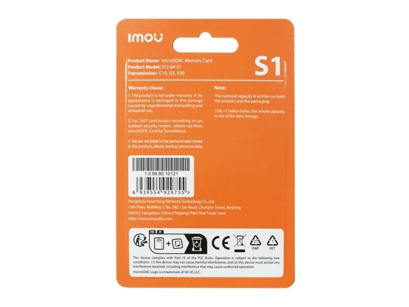 Imou ST2-64-S1, 64 GB, MicroSD, Klass 10, NAND, 95 MB/s, 35 MB/s