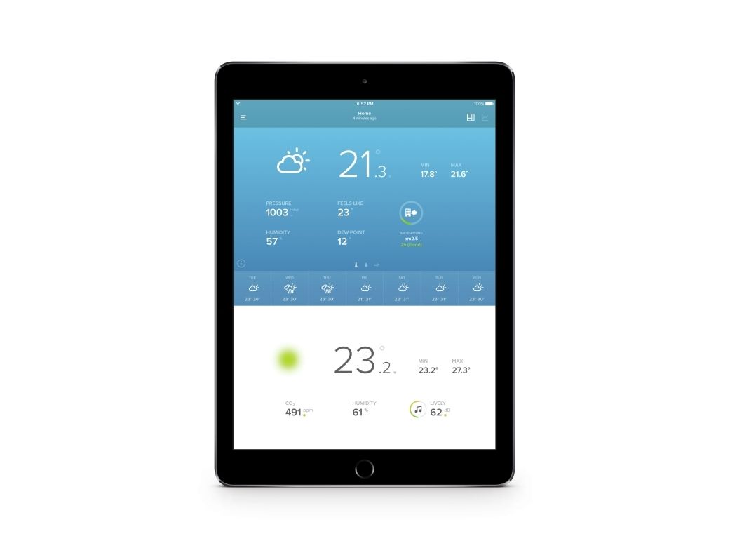 The Weather Station's Indoor Module measures your indoor comfort by providing vital information, alerting you when you need to air out your home to bring down its pollution levels. Indoor air is often more polluted than outdoor air. The Netatmo Weather Station measures indoor polution levels through a CO2 sensor, sending you alerts so you can air out your home when necessary and live in a healthier environment.