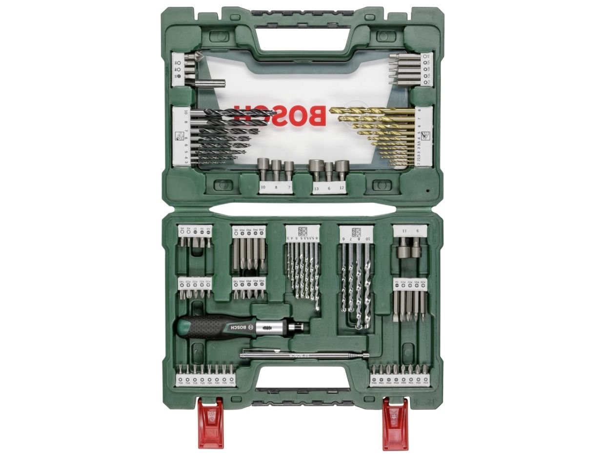 Bosch has enhanced the accessory cases for do-it-yourselfers, which have won numerous awards for their great design, and now presents sets called V-Line. They excel due to their attractive design, clearly arranged labeling and good visibility of the accessories contained in the case. Virtually all DIY applications can be performed using the V-Line accessory sets from Bosch. The main components of the sets are the hand tools, drill bits for drilling in different materials and screwdriver bits for conventional types of screw.