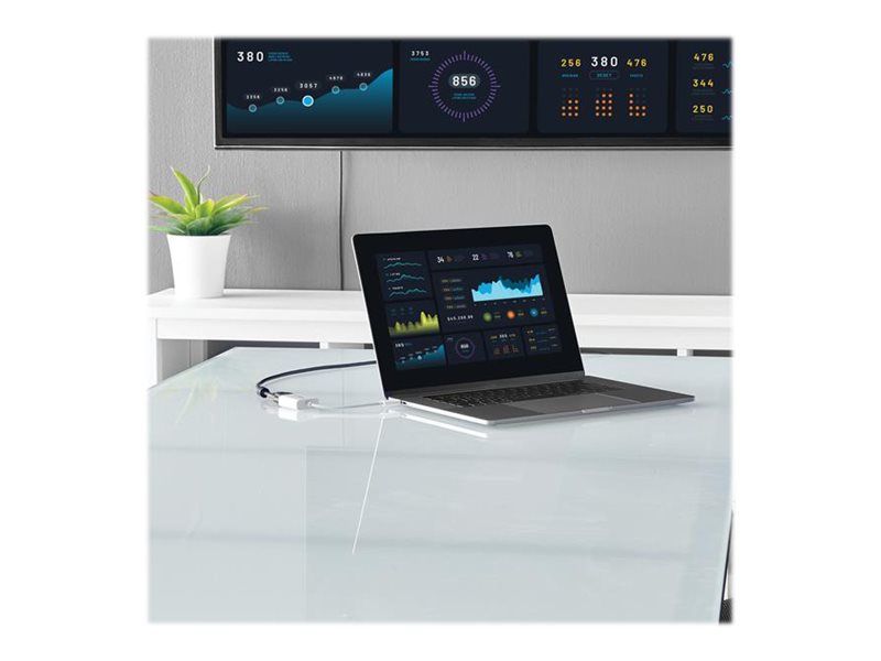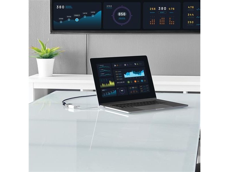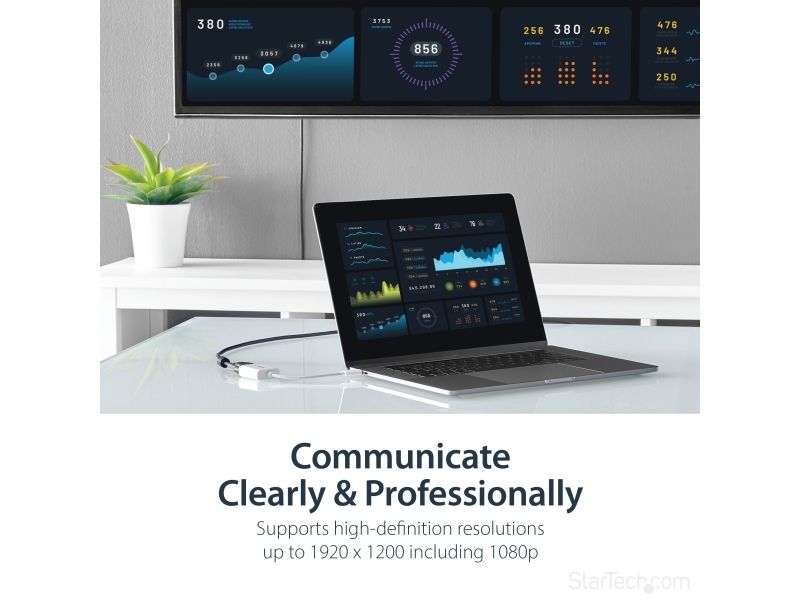 Adaptern låter dig utnyttja den mångsidiga USB Type-C-porten på din bärbara enhet. USB Type-C är en vändbar kontakt, så hur du än kopplar in den kommer den alltid att fungera och besparar dig bekymret och förlägenheten med att krångla med enheten när du har en presentation.