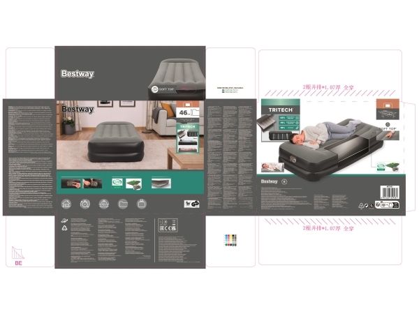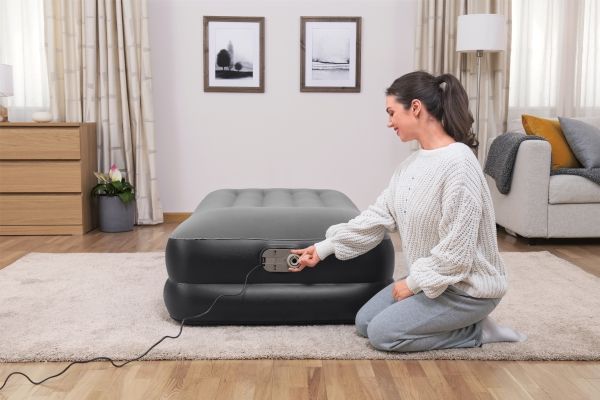 Flocked surface, built-in pillow, built-in electric air pump, I-beam construction, 3-layer construction