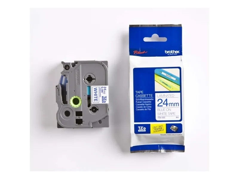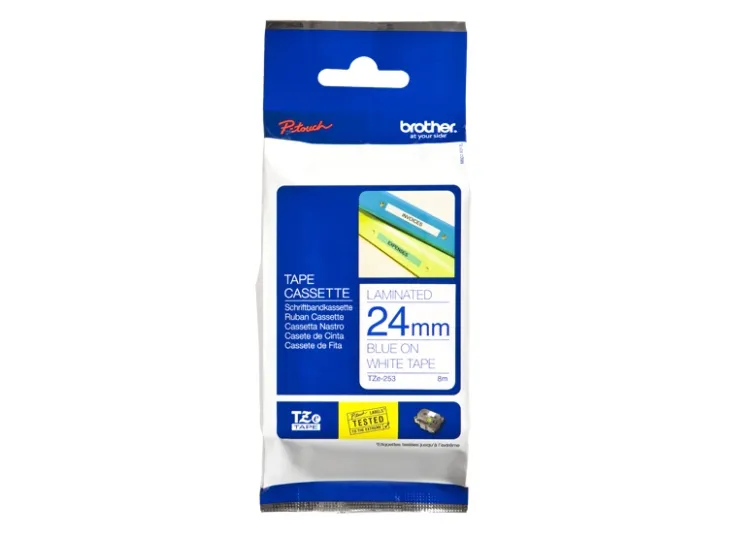 Brother TZe-253 - Blått på vitt - Rulle ( 2,4 cm x 8 m) 1 kassett(er) bandlaminat - för Brother PT-D600, P750, P950; P-Touch PT-3600, D800, E550, H500; P-Touch Cube Pro PT-P910