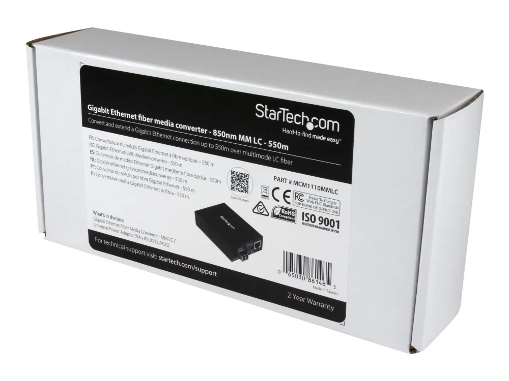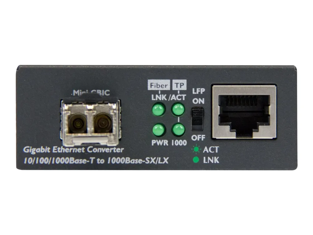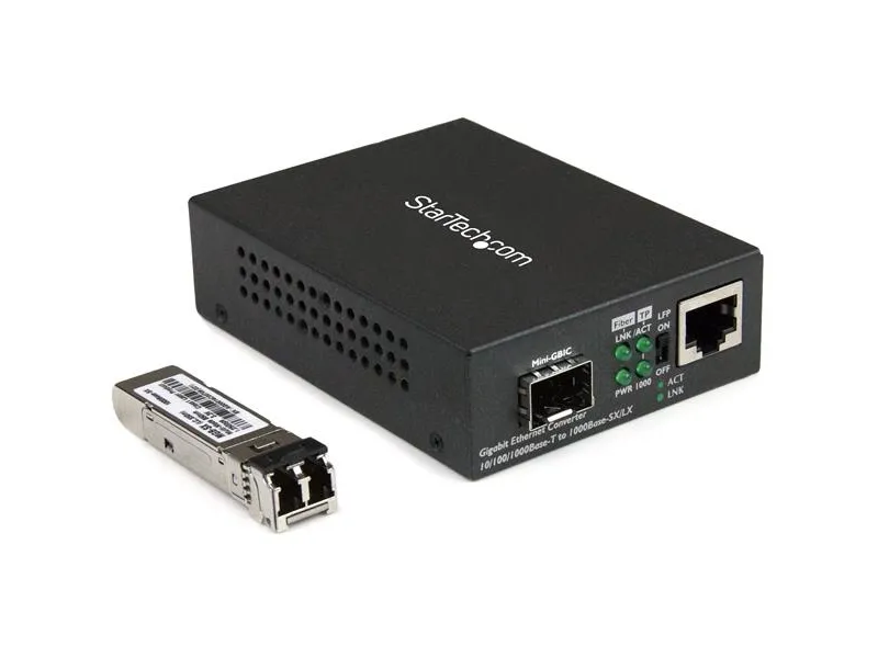 Denna fibermediaomvandlare är ett enkelt och kostnadseffektivt sätt att förlänga ditt nätverk över Gigabit-fiber. Den är utrustad med en sändtagare i multiläge som konverterar en RJ45 Ethernet-kopparanslutning till Gigabit-fiber för att förlänga ditt nätverk över större avstånd eller ansluta arbetsstationer till switchar. Omvandlaren ger en kraftfull förlängd nätverkslösning för universitetsområden, företag, myndighetsbyggnader, idrottsplatser eller andra arenor som behöver nätverksåtkomst. Kostnadseffektiv förlängning och tillförlitlig prestanda Gigabit-fibermediaomvandlaren är en kostnadseffektiv och tillförlitlig lösning för kortare nätverksförlängningar. Den ansluter ett Ethernet-nätverk till avlägsna enheter över ett fiberstamnät, med en räckvidd på 550 m med det fiberoptiska gränssnittet. Mediaomvandlaren har ett hållbart metallhölje som är tillverkat till att ge långvarig prestanda. Mångsidiga anslutningar för bred kompatibilitet Fibermediaomvandlaren är fullt kompatibel med 10/100/1000Base-T Ethernet-nätverk och stöder auto-negotiation för att ansluta nätverk med olika hastigheter och enheter till ett Gigabit-fibernätverk. Den ger mångsidiga anslutningar till dina befintliga nätverk och enheter så att du kan maximera användningen och prestandan på din äldre utrustning. Sändtagaren i multiläge är löstagbar så att du i framtiden kan ändra den för att tillgodose dina nätverksbehov. Enkel installation och kompakt behändighet Den okontrollerade fibermediaomvandlaren har en fristående design med enkel plug-and-play-installation för att garantera snabb och enkel installation. Omvandlaren har en kompakt storlek som ger dig flexibla installationsalternativ - inklusive väggmontering för att spara utrymme.