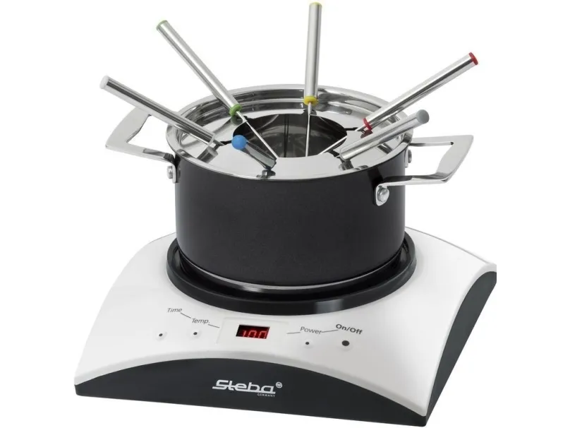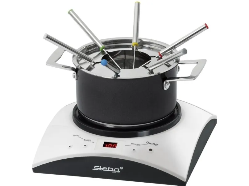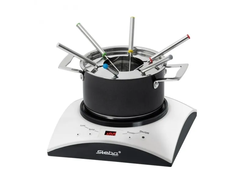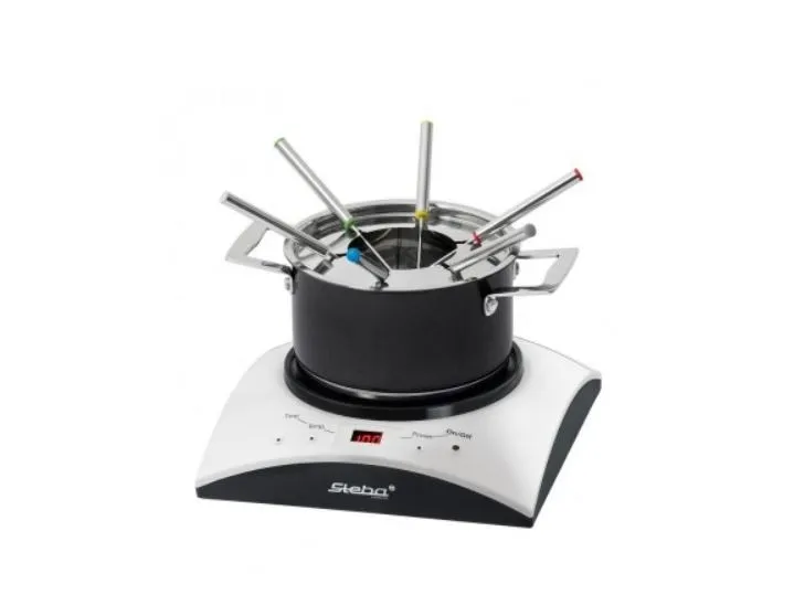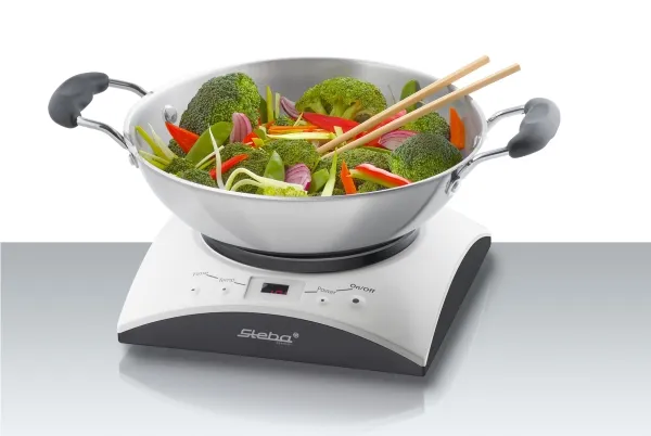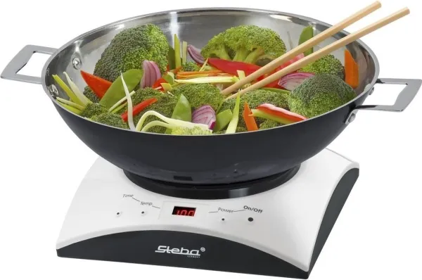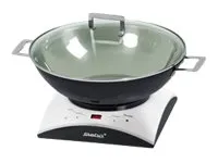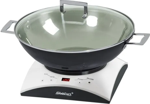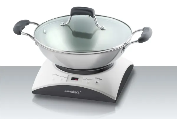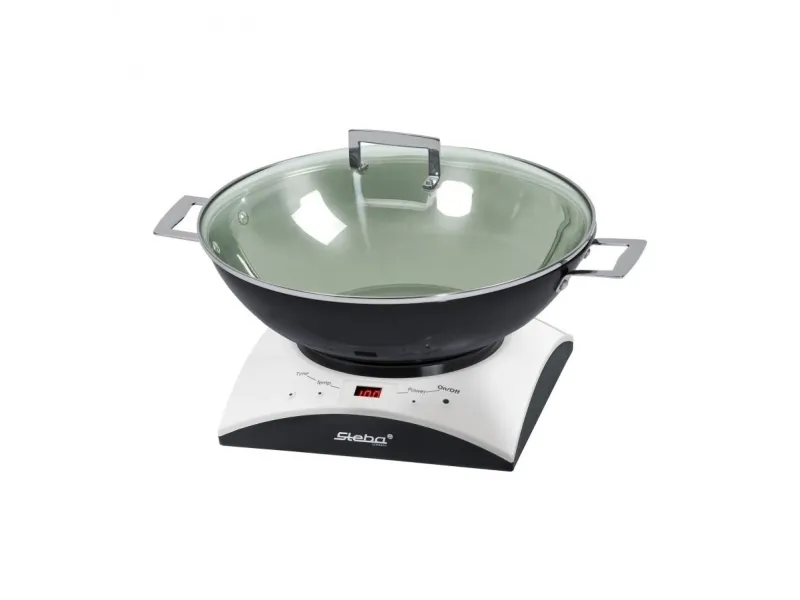 - Cooking area: Ø 16,5 cm - Temperature control (60 - 240°C) - 6 power steps - Timer function (10 - 120 min.) - Easy cleaning - Including stainless steel wok with glass lid - Including stainless steel fondue pot with 6 forks - Safe: - Automatic pot recognition - Turns off when no pot is on the top - Base of pot is heated directly