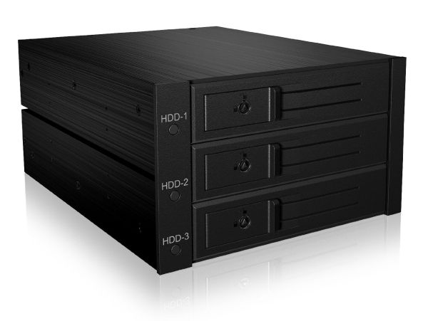 These three HDD backplanes are well-proven in extremely hard server duty. Even with highest transfer rates they run very smoothly. That's why they recommend them for the demanding duty in RAID systems. Accordingly elaborate is the temperature control. The aluminum parts dissipate the heat. The 80-mm fan operates reliably and silently and the operating mode is easily adjusted. If high temperature is detected there are optical and acoustic warning signals. All moving parts are layed out for strongest strain. The trays and their locking mechanism are extremely fitting. They slide without resistance. The aluminum parts are electropolished.