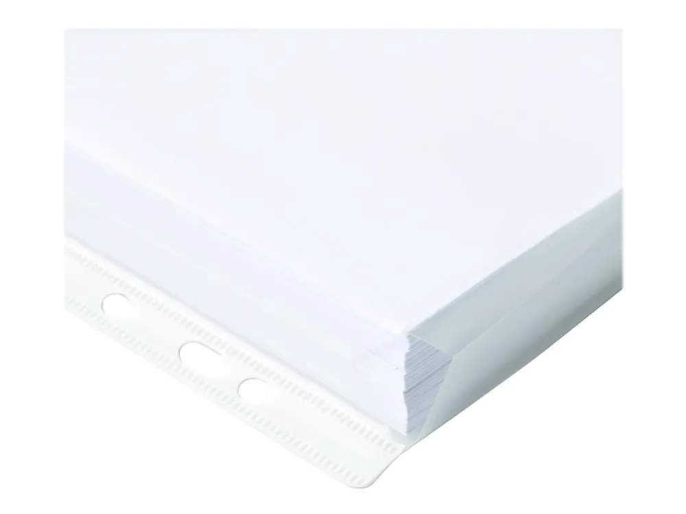 Katalogficka utan lock som säkerställer optimalt skydd av innehållet i fickan. Tillverkad av kraftig genomskinlig PP-folie med ett extra lager vit PP-folie som ytterligare förstärkning av hålraden.