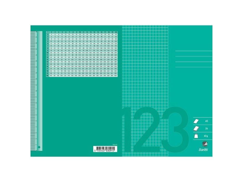 Räknehäfte Bantex A5, kvadrerat 5 x 5 mm, gräsgånt, 25 st