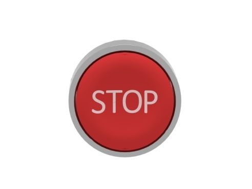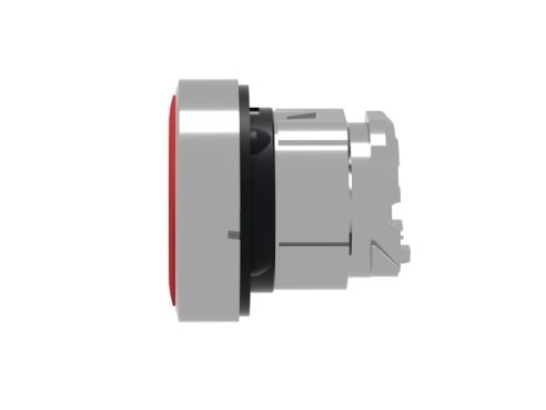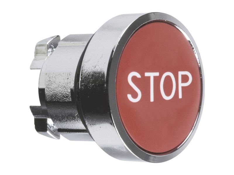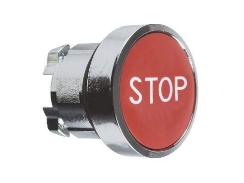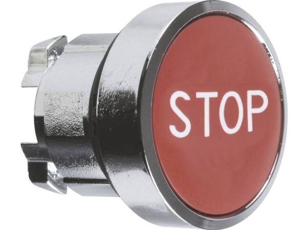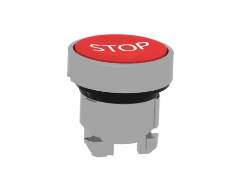 Harmony trykknaphoved i metall med fjäder-retur och plan tryckflade i röd färg med vit "STOP"