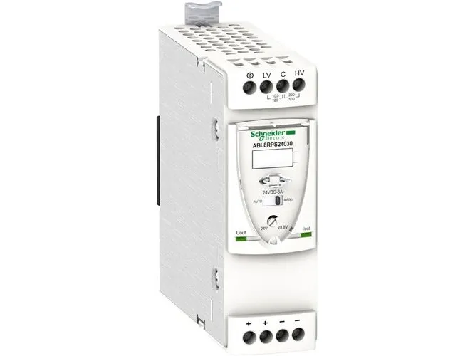 Taktet spændingsforsyning UNIVERSAL, 100-500 VAC, 1-2 P, 24 VDC, 3 A, 72 WSpændingsforsyningen er specielt lavet til DC-indgang i automatiseringsanvendelser konstrueret og udmærker sig ved sin robusthed. Udgang: 24 VDC med 3 A / 72 W - udgangsspænding kan indstilles: 24-28,8 VDC - Overbelastningsevne: ekstra 50% ydelse ved boost-funktion - adfærd i tilfælde af kortslutning kan indstilles: manuel eller automatisk nulstilling - indgangsspænding: 100-120/på 200-500 VAC (50/60 Hz) - universel tilslutning til N-L eller L1-L2 - med PFC-filter opfylder EN61000-3-2 - 2 LED'er for tilstand meddelelser - kabinet af metal til skinnemontering med oplåsningsgreb - funktionsprincip: elektronisk clockfrekvens