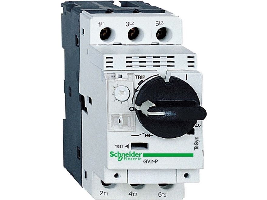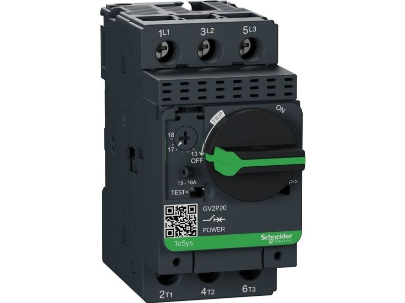 SCHNEIDER ELECTRIC handmanövrerat motorskydd Type GV2-P 3-poligt inställningsområde 13–18A vid 400VAC skruvplint högt kortslutningsavbrottsvärde vridgrepp
