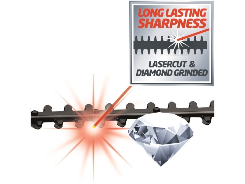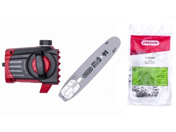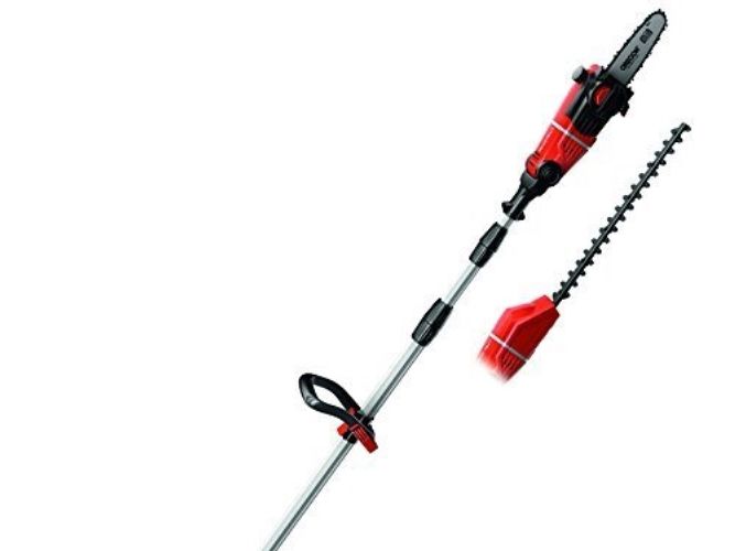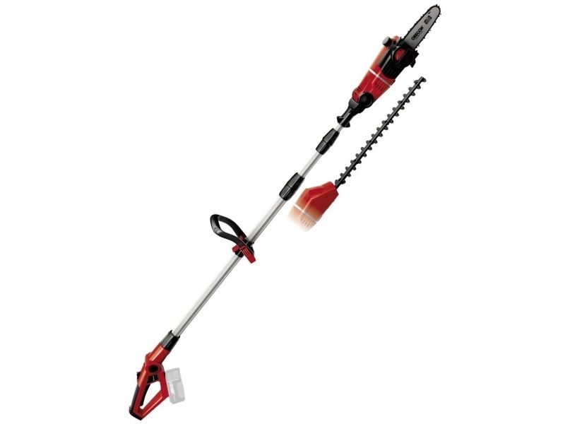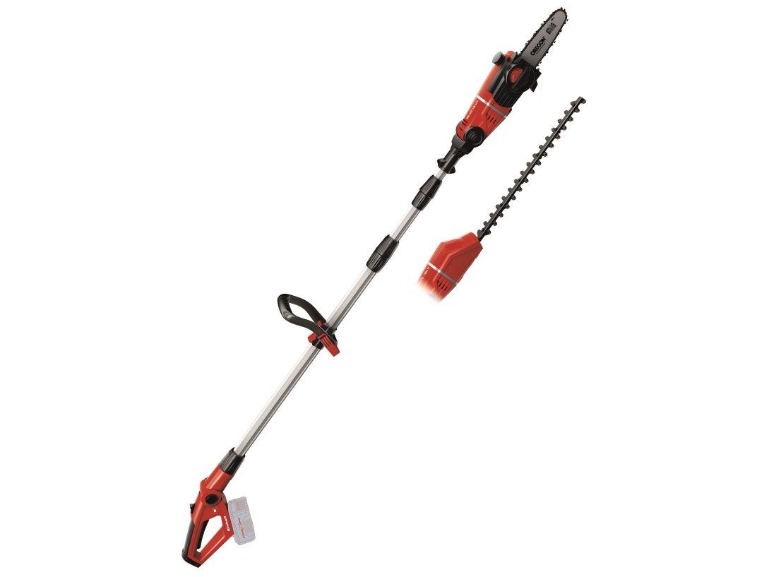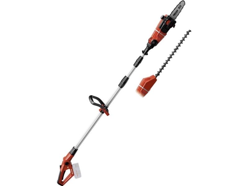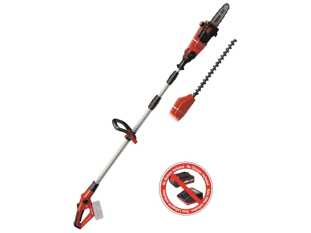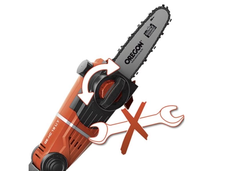 90° vridbar tillsats för lätta vågräta snitt Motordelen kan vinklas i 7 positioner Handtaget kan vinklas i 4 positioner Steglöst justerbart teleskopskaft i aluminium (880-1820 mm) Extra justerbart skaft med snabbkoppling Hållbar växellåda i metall OREGON-svärd och -kedja Sträckning och byte av kedja utan användning av verktyg Laserskuret och diamantslipat skär i stål Robust väska för transport och förvaring Bärrem Med oljetank för automatisk kedjesmörjning Levereras utan batteri och laddare (köps separat) Svärdlängd, kedjesåg: 200 mm Kedjehastighet: 3,76 m/s Max. klipplängd som häcksax: 400 mm Avstånd mellan tänderna: 16 mm Klipp per minut: 1 700 v/min 6219941