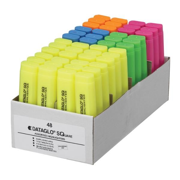Tekstmarker Dataglo m/skrå spids ass. farver, boks med 48 stk.