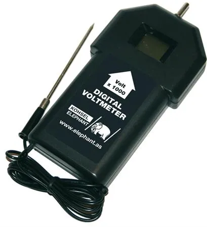 Mätare med digital display. Registrerar stängselspänningen i kV från 0-10 000 volt. Batteridrift - 9 volt, 6LR61.