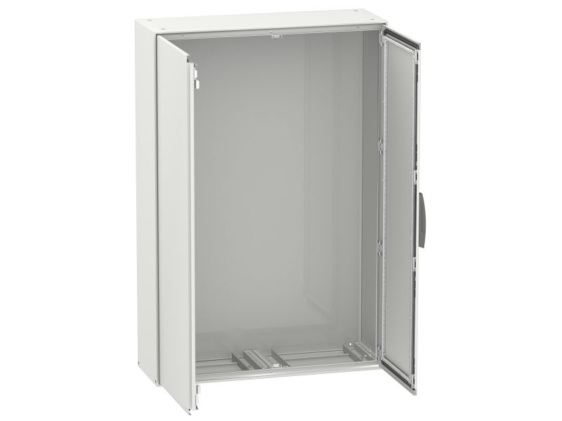 SCHNEIDER ELECTRIC golvskåp i metall SM, HxBxD: 2000x1200x400 mm RAL7035 med monteringsplåt, IP55, 2 dörrar, öppen botten med flänsplåt