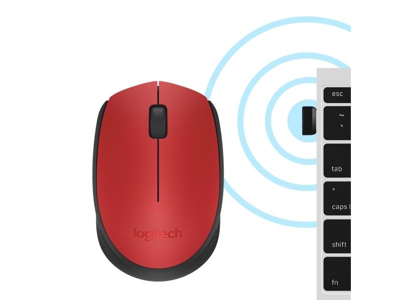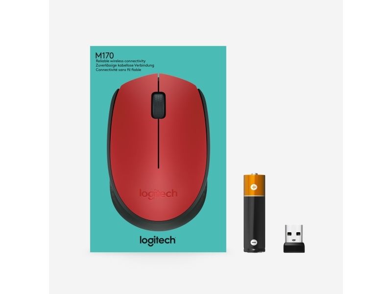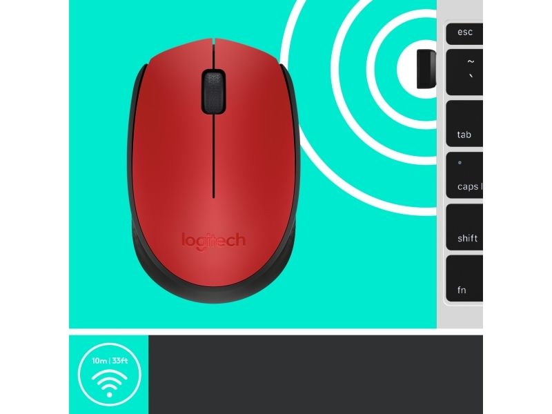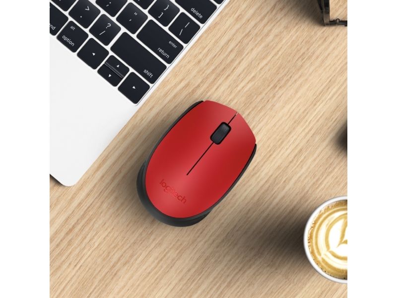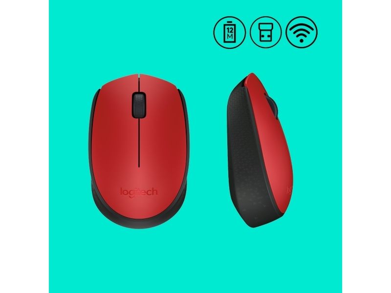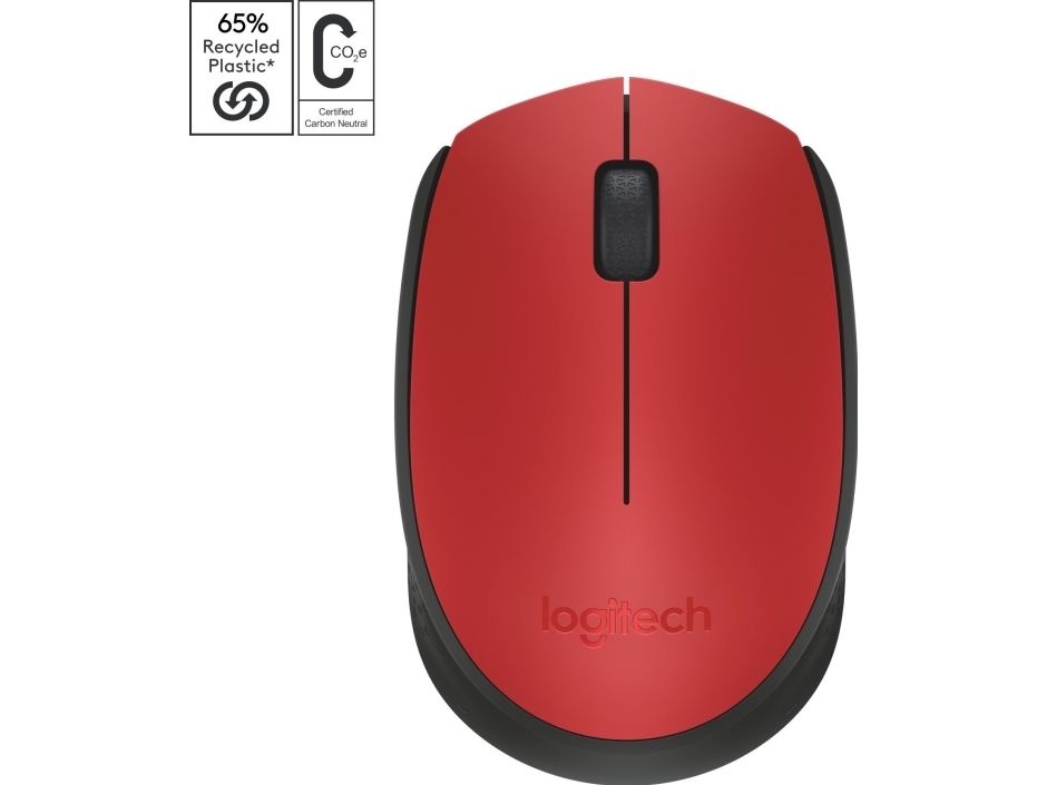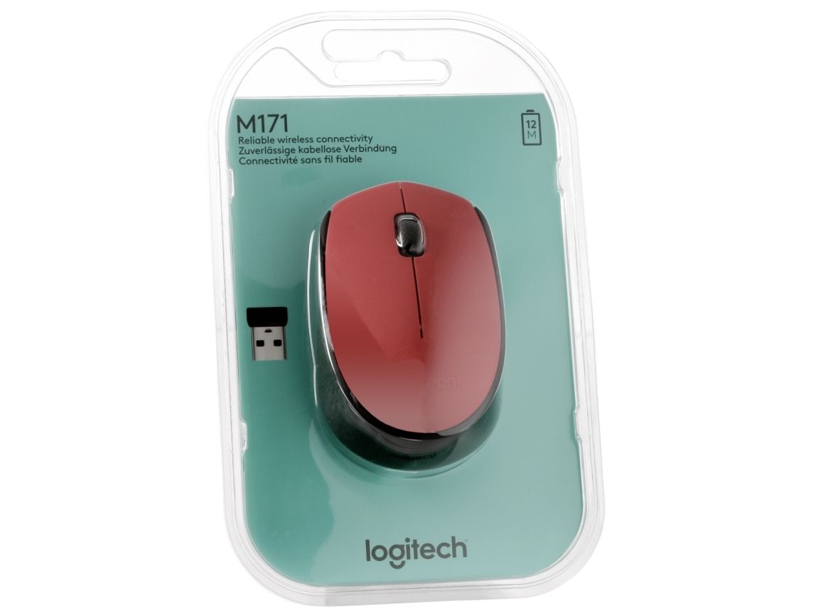 Logitech M171 - Mus - trådlös - 2.4 GHz - trådlös USB-mottagare - svart, röd