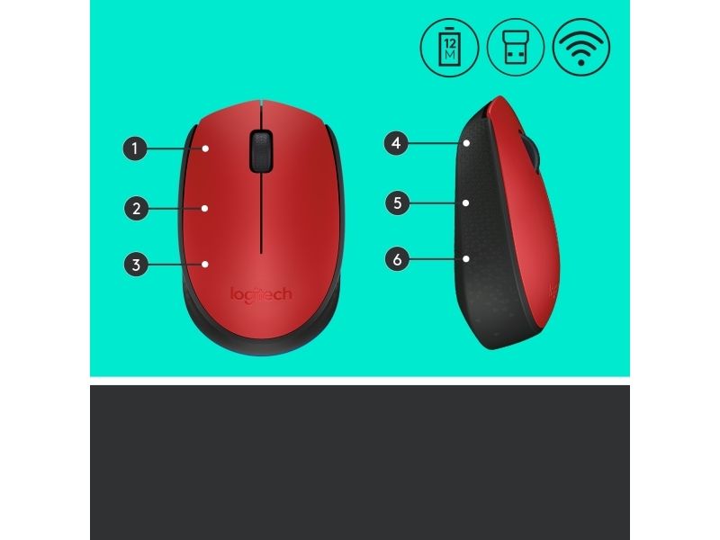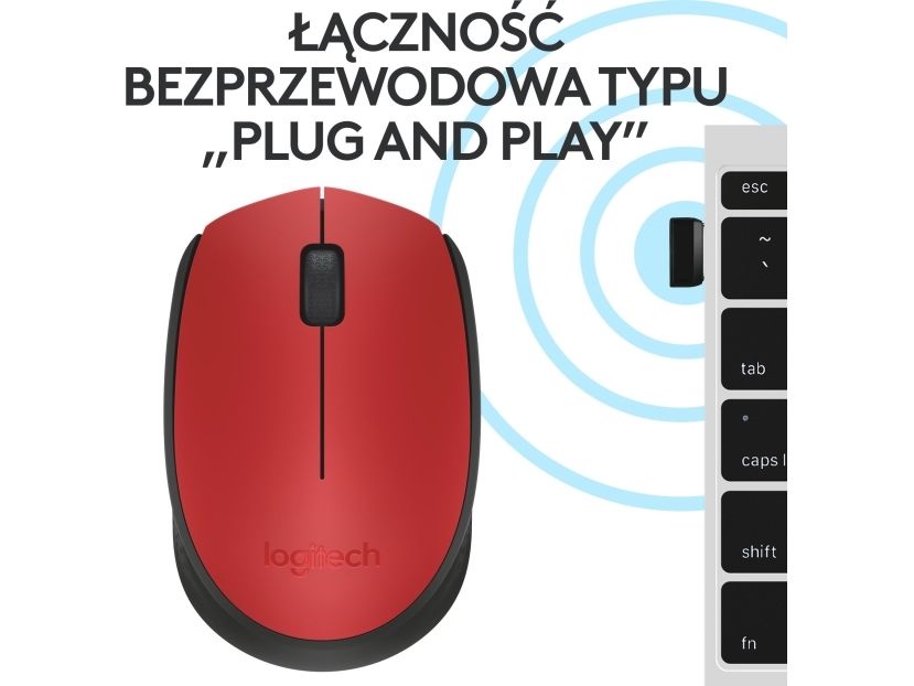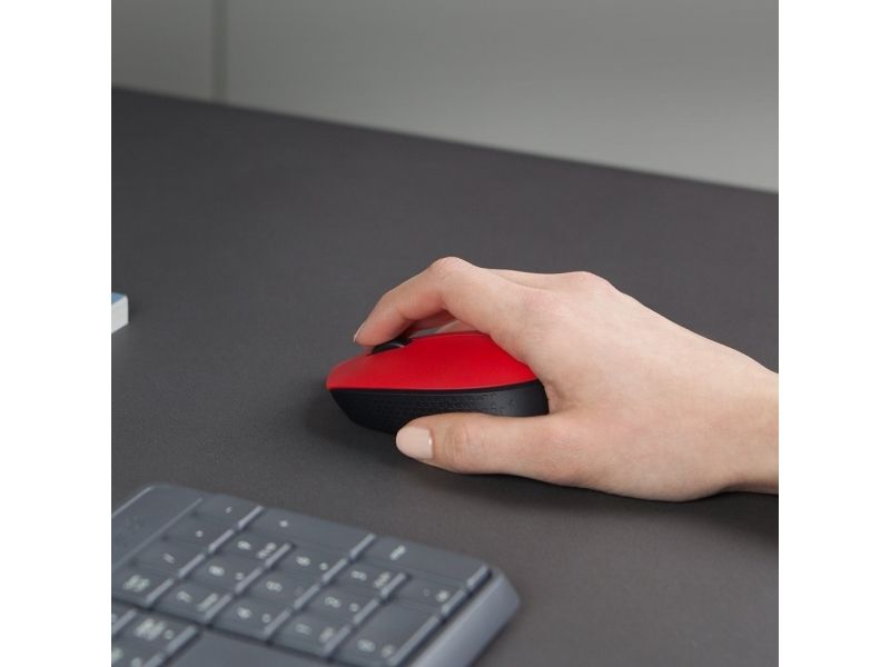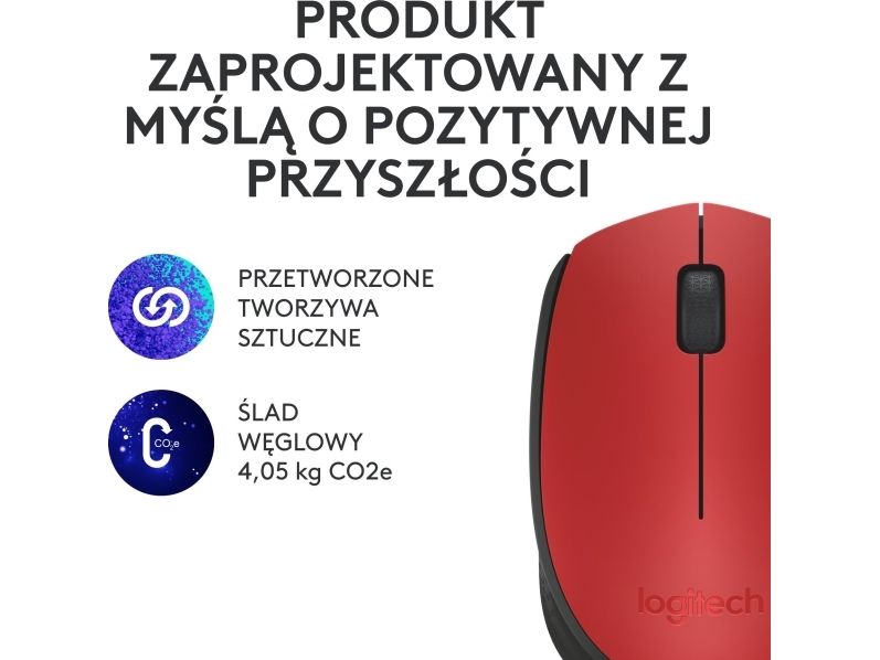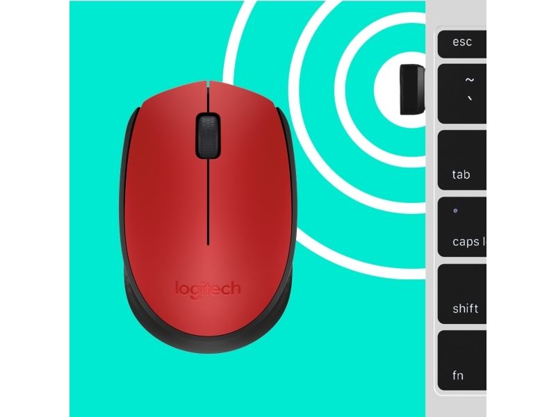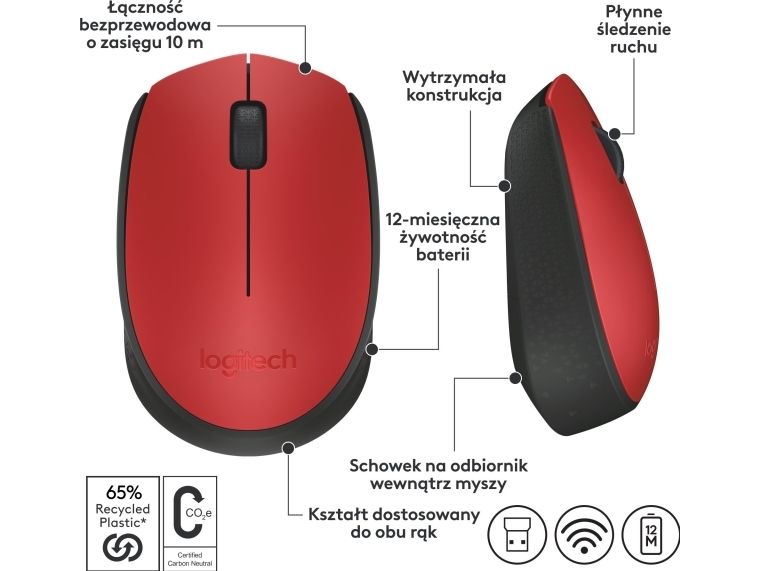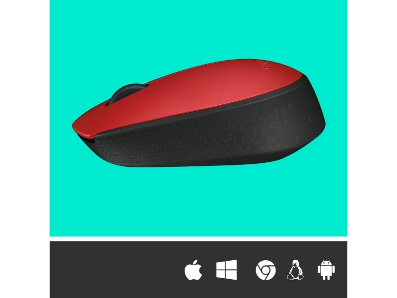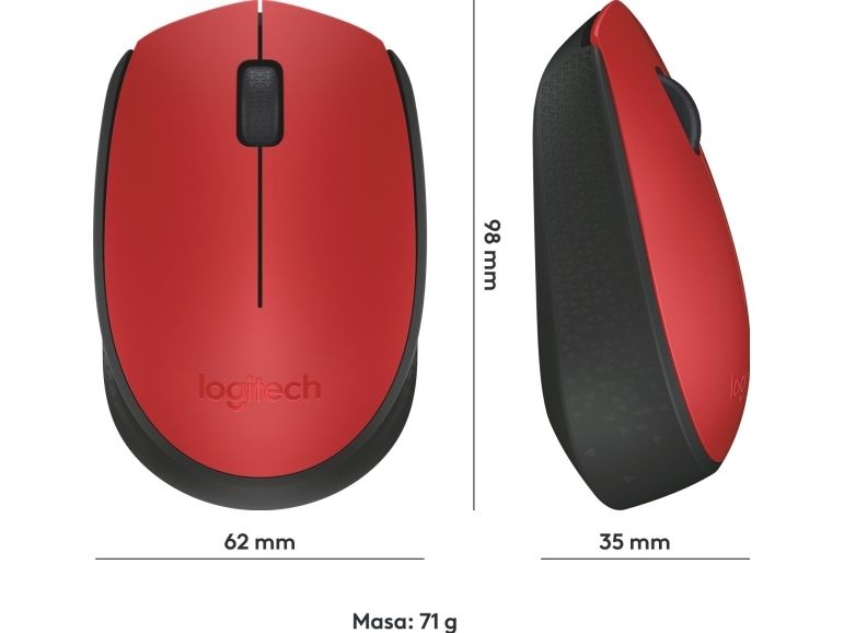 Logitech M171 - Mus - trådlös - 2.4 GHz - trådlös USB-mottagare - svart, röd
