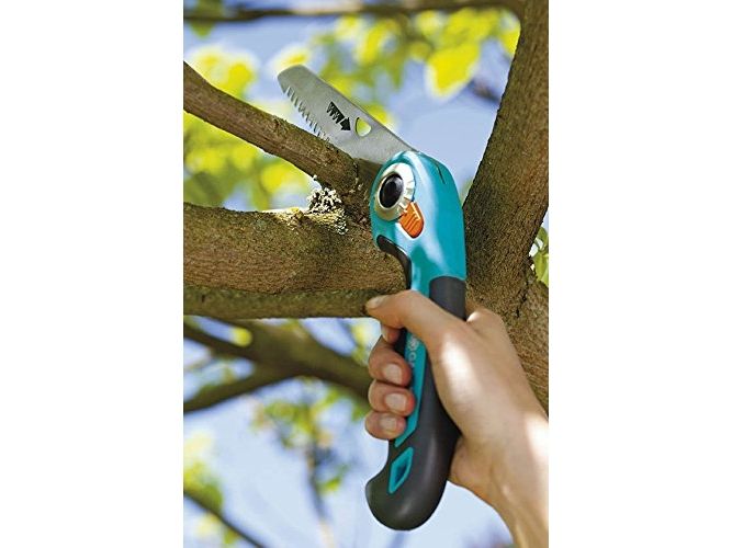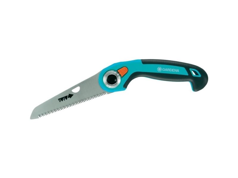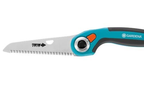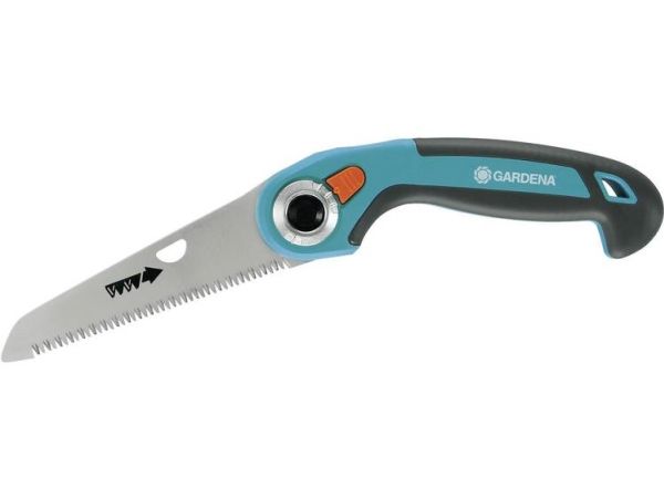 The Gardener’s Folding Saw 135 P belongs to the new generation of GARDENA saws. This saw has a total length of 135 mm, making it an easy-to-use all-rounder for cutting back thicker branches. It is ideal for all minor sawing work in the garden, and also for outdoor activities. It is lightweight and effective. The hard-chrome-plated saw blade has impulse-hardened precision toothing with triple grinding, which ensures fast results with little use of force, and a superb, precise cut. Notching in particular is made substantially easier. Rust has no chance to attack. You can carry this handy Folding Saw around with you in the garden, for example by safely folding it and locking it securely to put your trouser pocket, or to hang on your belt. Whenever you need your saw, simply open it up again using the thumb hole. The lock button holds the saw securely and safely in three different settings. And if you don't require the saw, simply fold it together again. The saw blade will disappear safely into the beautifully-shaped handle. During sawing, a stop at the end of the handle prevents you from slipping. This has proven particularly useful during pulling movements, and assists you in making smooth progress. Thanks to the ergonomic, slightly angled handle shape and soft handle parts, this saw lies comfortably and safely in your hand. The saw can be stored without taking up much room and in a handy place using the eyelet. The warranty period totals 25 years.