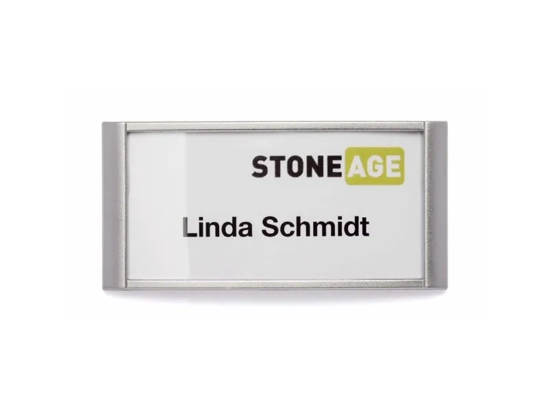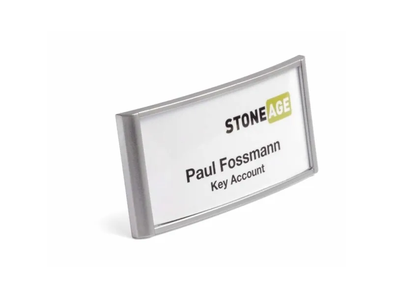 The CLASSIC name badges with a galvanised silver finish are suitable for exhibitions, hotels & restaurants, retail stores and much more. The badges can be re-labelled with ease, thanks to the flap on the reverse of the badge. For easy, safe fastening even to delicate garments, the badge is held securely in place by twin magnets. Insert size: 30 x 65 mm Design and print professional inserts online using free Duraprint® software.